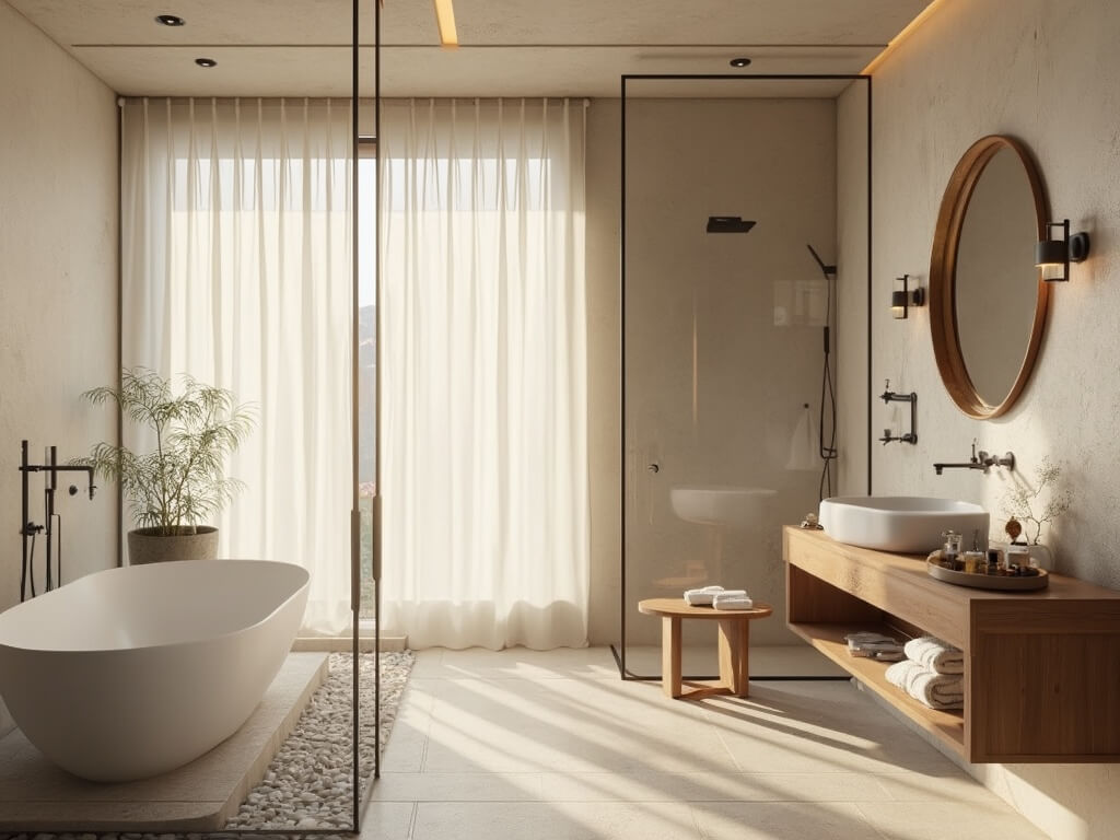 - Incorporation of natural elements like wood, stone, and linen fabrics