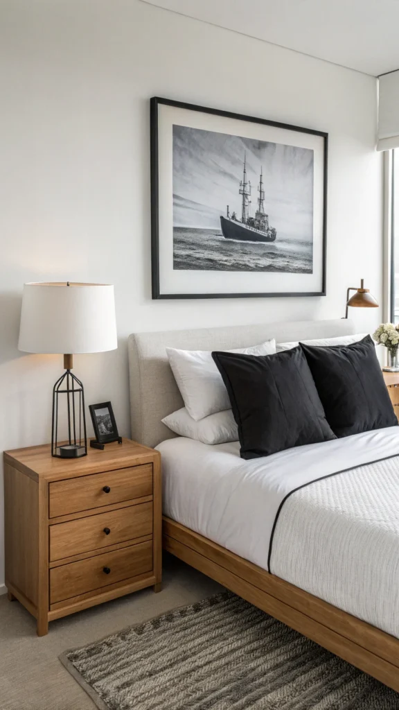 Infuse your minimalist bedroom with subtle personal touches that reflect your style. Display a curated selection of framed travel photos or minimalist prints to create emotional resonance without overcrowding. Incorporate unique textiles or artisan-crafted lamps to add warmth and individuality while maintaining a clean aesthetic.