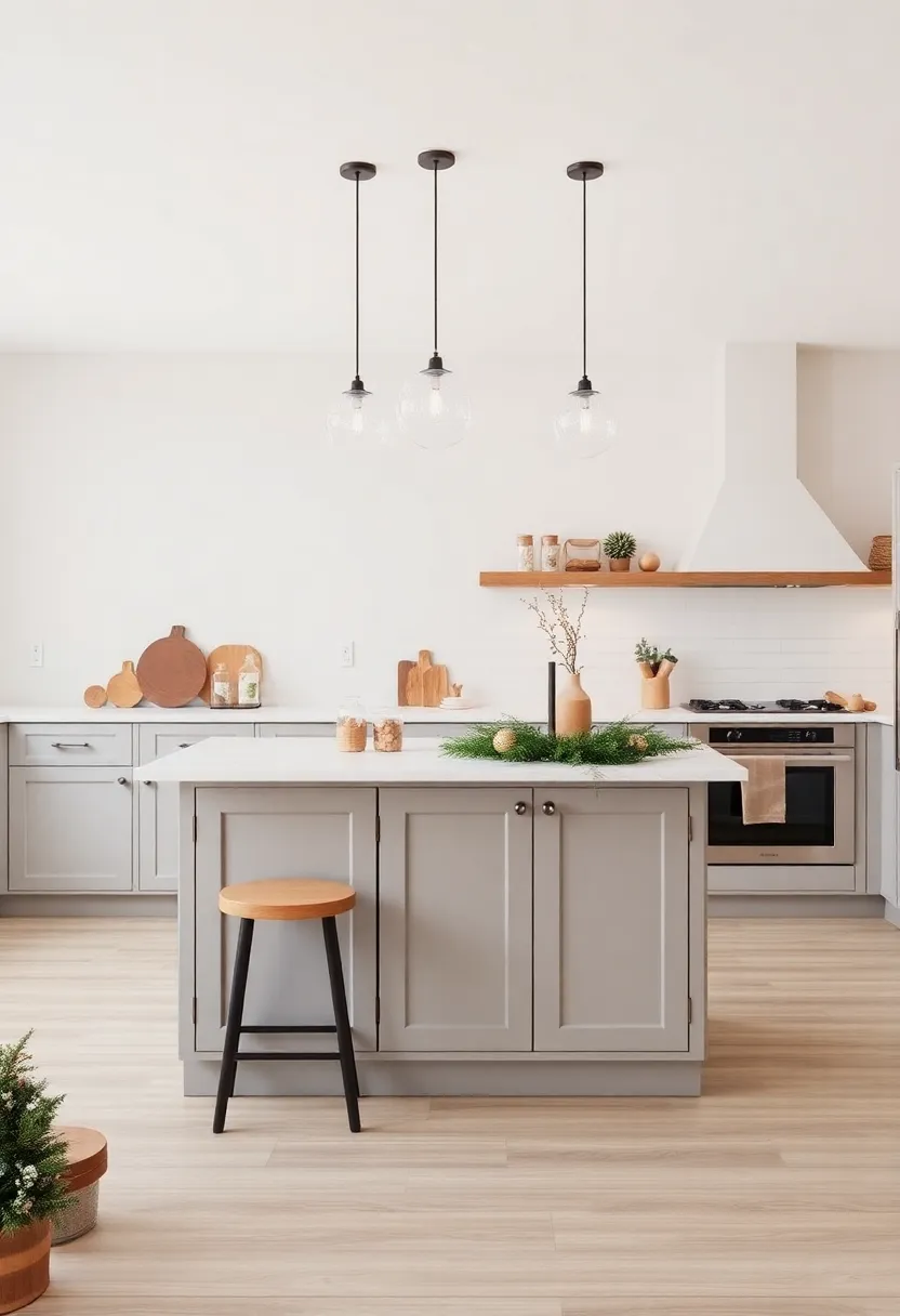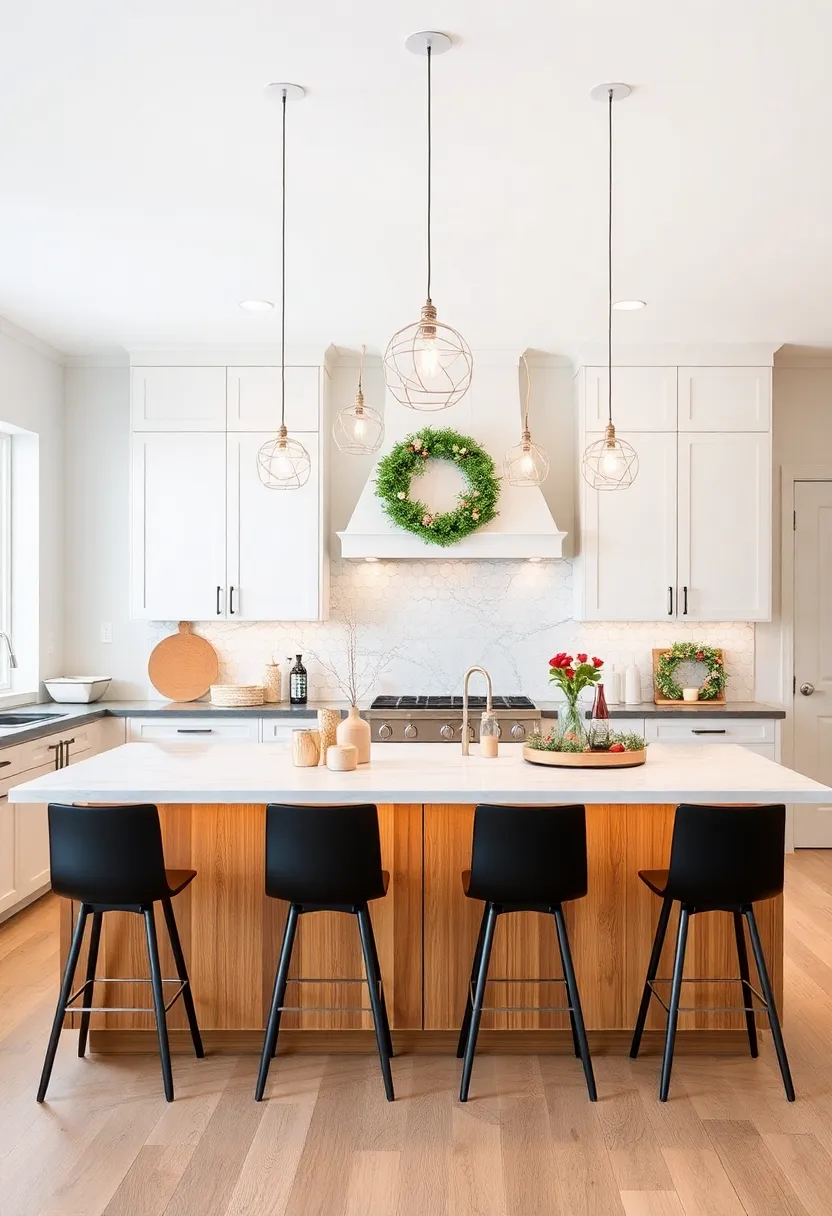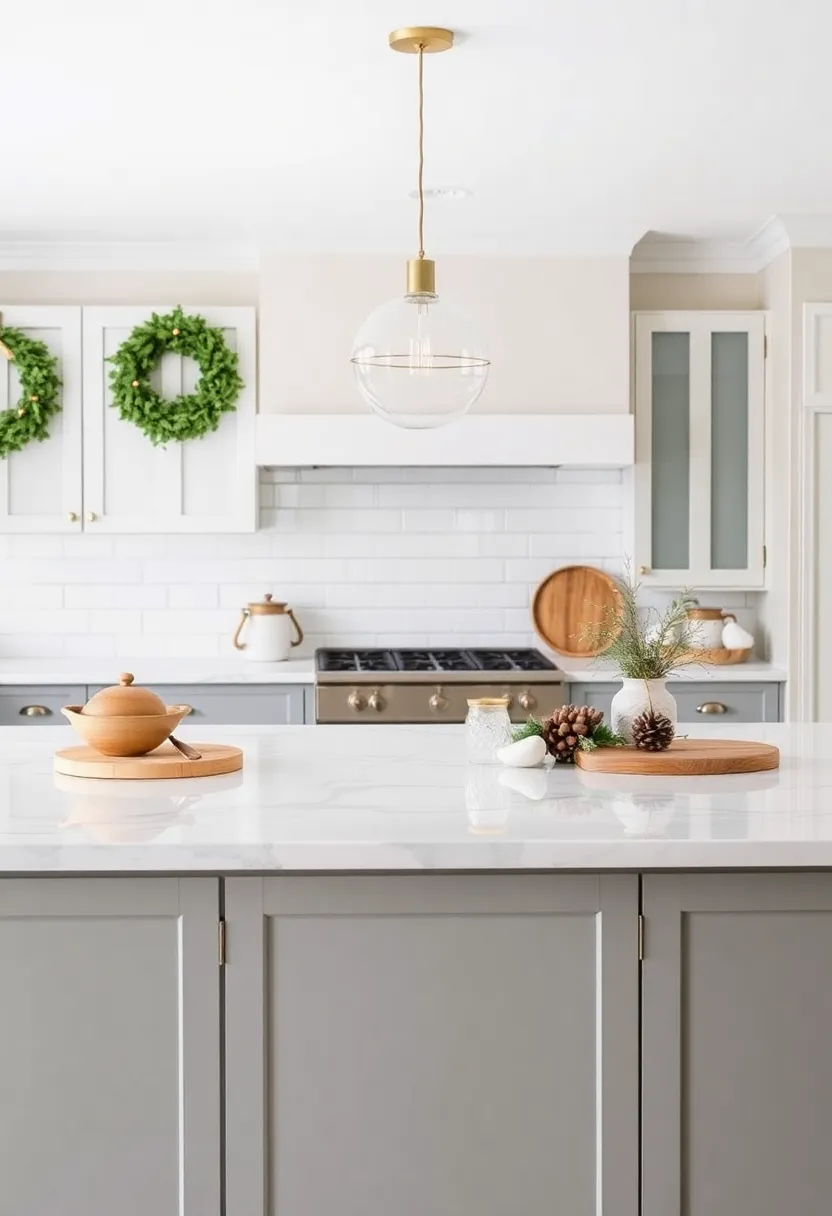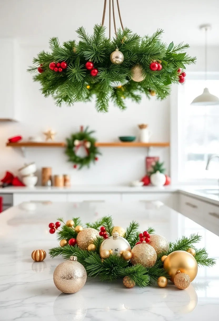 - Pine Boughs: Drape soft pine branches around your island to evoke the spirit of the holidays.