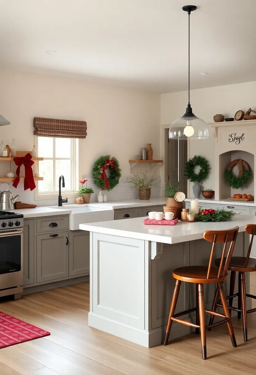 One of the simplest yet most enchanting ways to elevate your kitchen space is by draping glittering fairy lights around your kitchen island. These delicate strands of light can create a cozy atmosphere, making your kitchen feel warm and inviting for holiday gatherings. Consider wrapping them around the edges of your island counter or weaving them through a decorative centerpiece. This subtle illumination not only serves as a backdrop for your festive decor but also enhances the overall ambiance of your kitchen, making meal prep and entertaining a delightful experience.