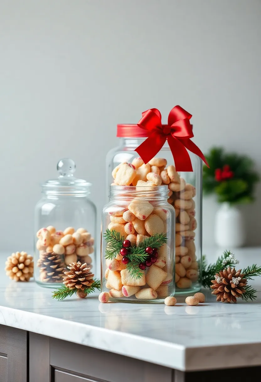 Elevate your kitchen island’s charm with elegant glass jars brimming with delightful holiday treats. These clear vessels not only showcase their contents beautifully but also invite friends and family for a festive tasting experience. Fill them with a variety of sweets and savories that capture the essence of christmas, such as: