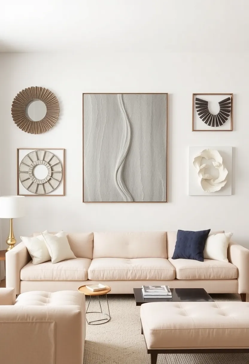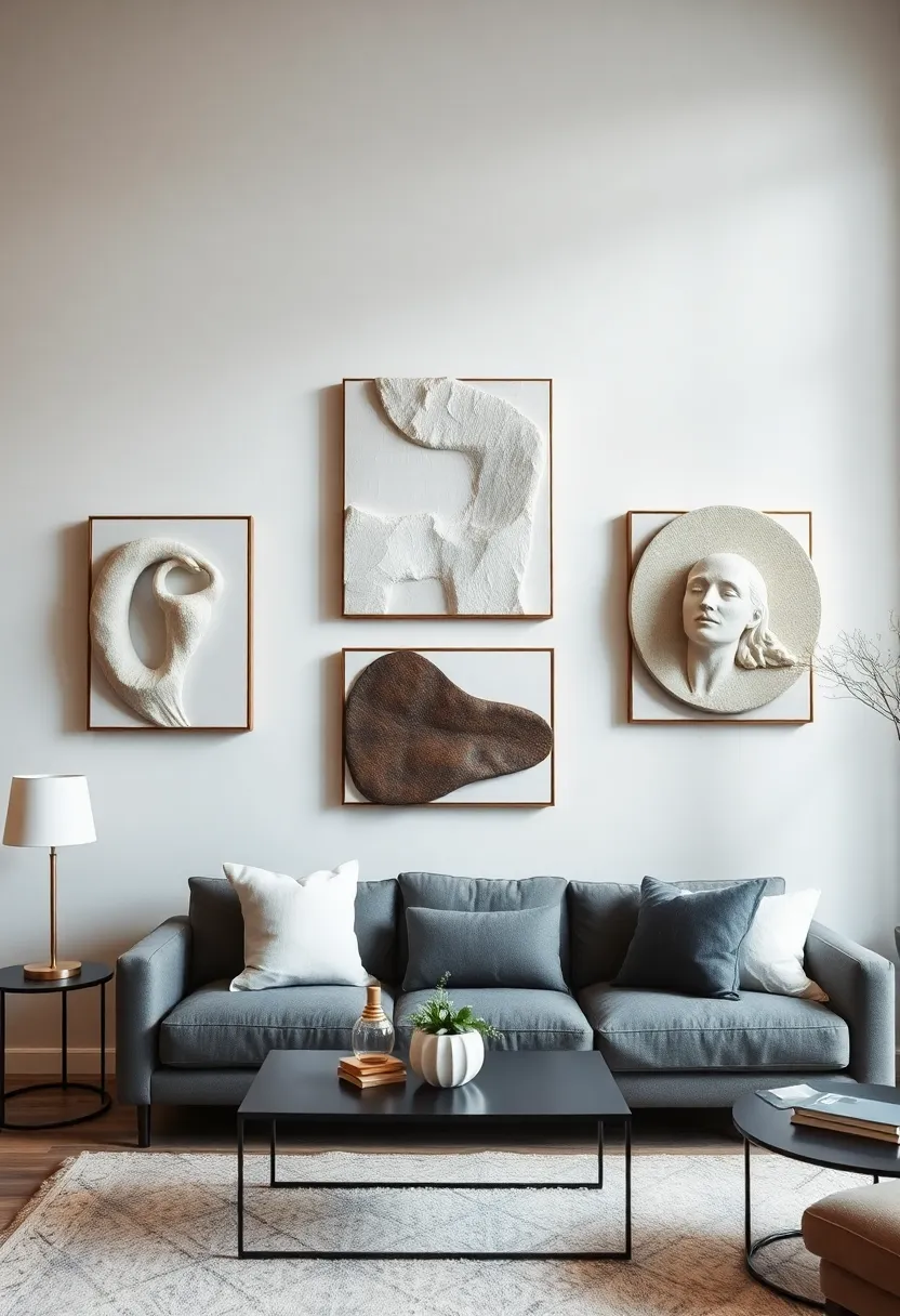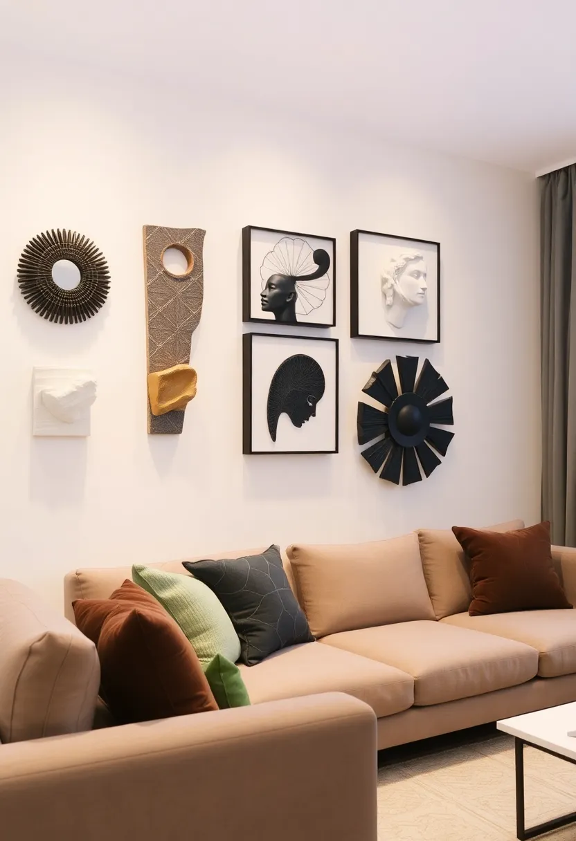Explore options like combining textile wall hangings with smaller relief sculptures to achieve a cozy, bohemian aesthetic.The textures from textiles can counterbalance the rigidity of sculptural forms, fostering a warm and inviting space. Additionally, you can arrange a gallery wall that features a mixture of photography, gilded mirrors, and small sculptures, allowing for a harmonious blend of styles and dimensions. This eclectic approach creates a sense of curated chaos, ensuring your living room is a reflection of your personality and taste. For more inspiration, check out Architectural Digest.
