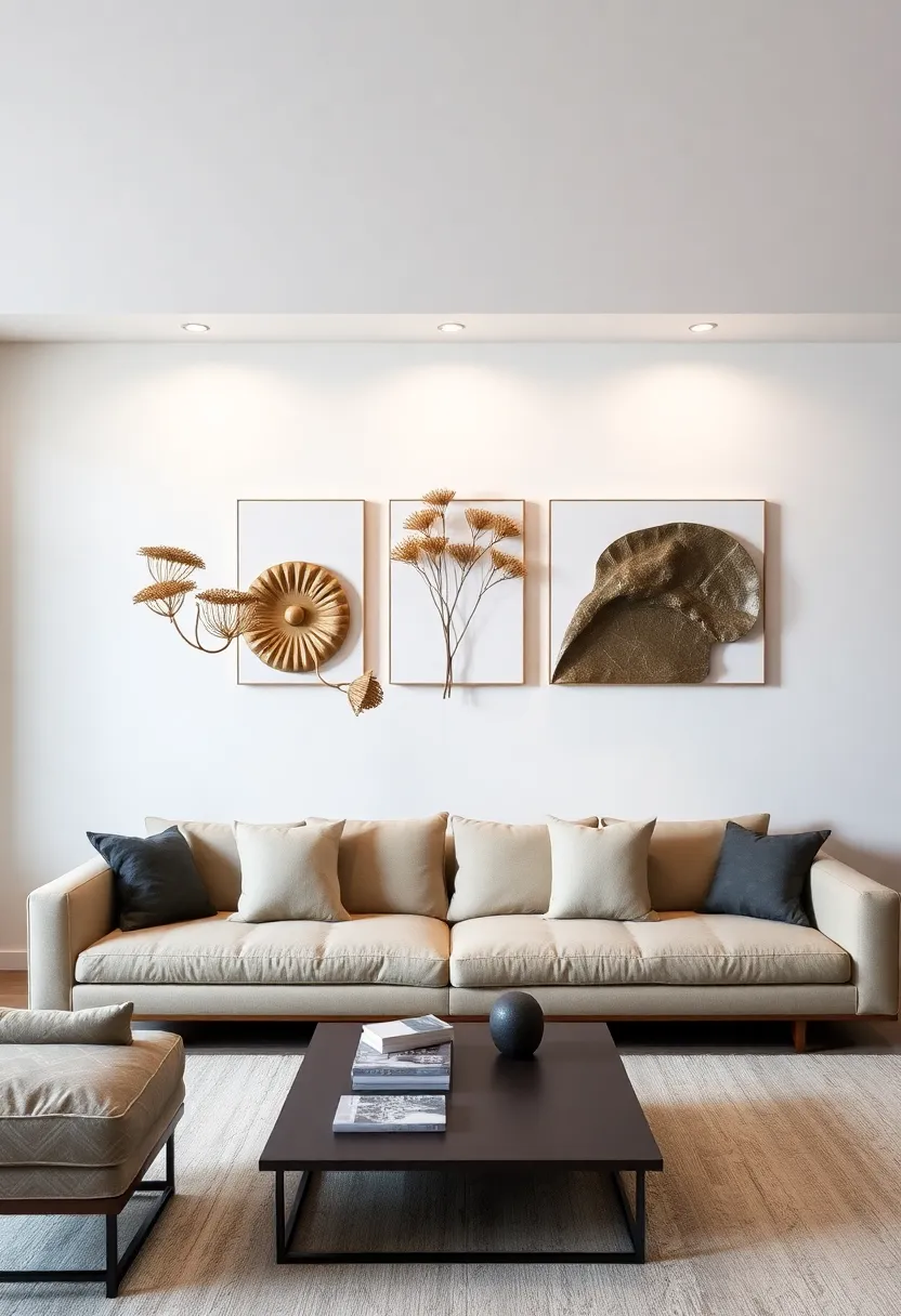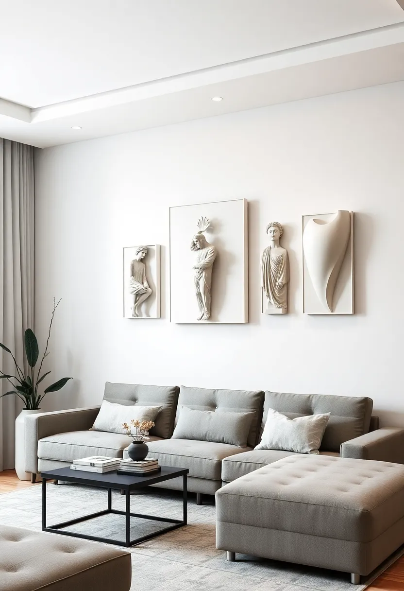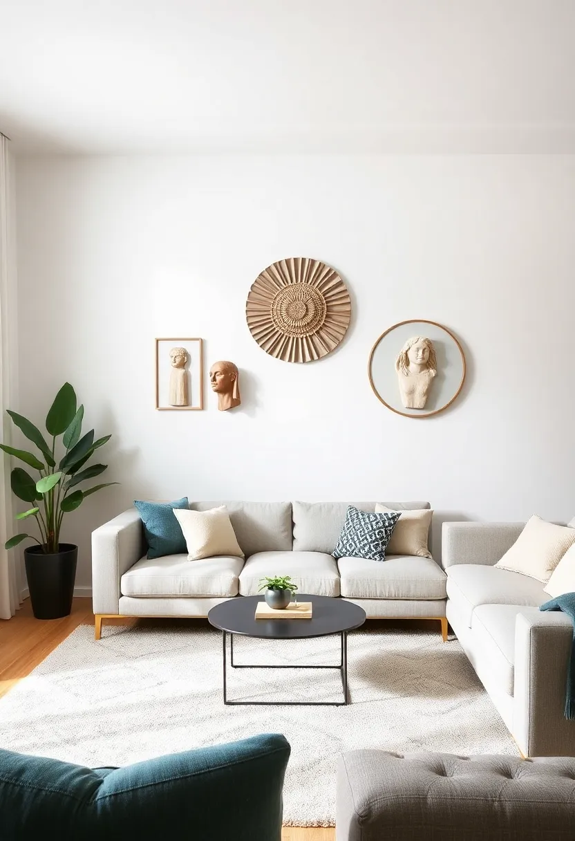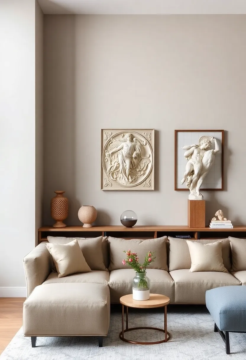 Explore options like combining textile wall hangings with smaller relief sculptures to achieve a cozy, bohemian aesthetic.The textures from textiles can counterbalance the rigidity of sculptural forms, fostering a warm and inviting space. Additionally, you can arrange a gallery wall that features a mixture of photography, gilded mirrors, and small sculptures, allowing for a harmonious blend of styles and dimensions. This eclectic approach creates a sense of curated chaos, ensuring your living room is a reflection of your personality and taste. For more inspiration, check out Architectural Digest.