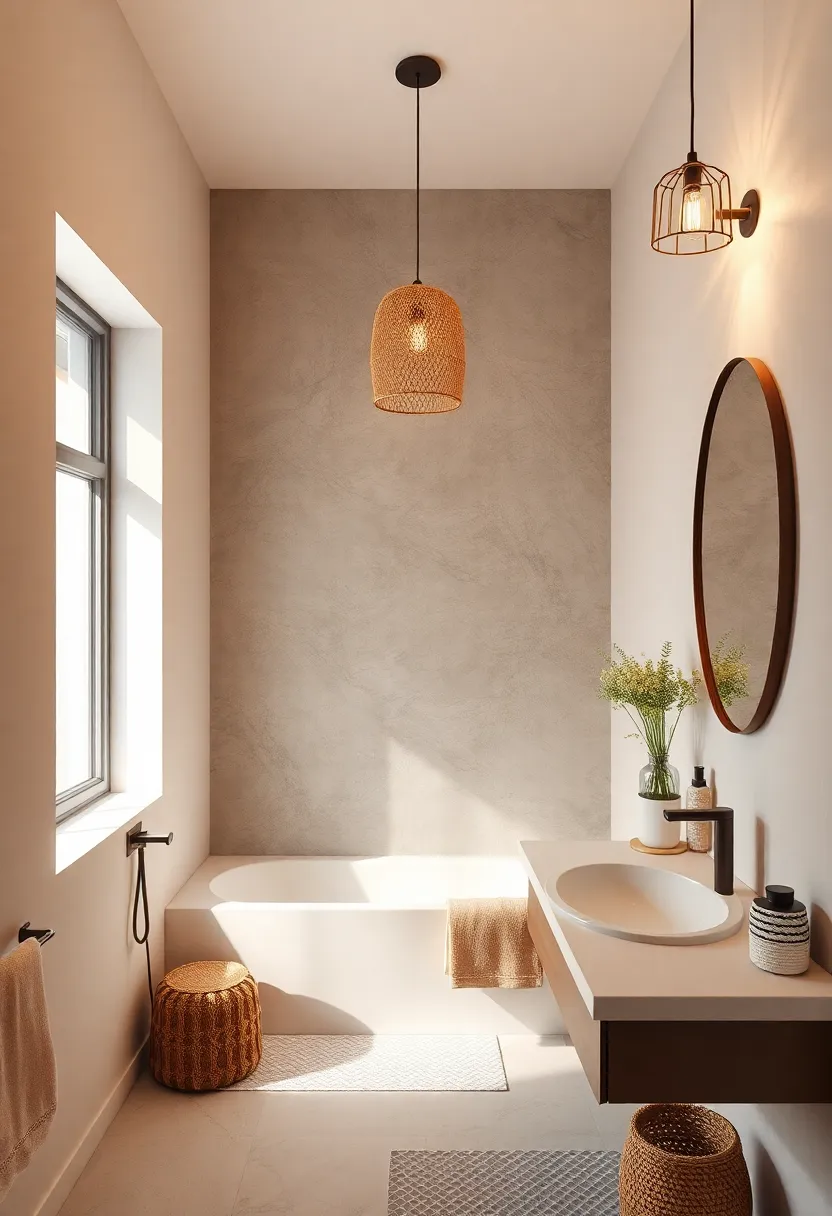 Incorporating natural elements can further enhance the warmth of your lighting choices. Embrace the boho aesthetic by introducing woven light fixtures or decorative lanterns that create unique shadows while enriching the overall ambiance. Consider the strategic placement of mirrors to reflect light and visually expand the space, mixed with plants to bring the outdoors in. Pair these aspects together with a palette of neutral tones and earth colors, and you’ll craft a bathroom retreat that’s not only aesthetically pleasing but also incredibly inviting. For more inspirations on creative lighting in home decor, check out Apartment therapy.