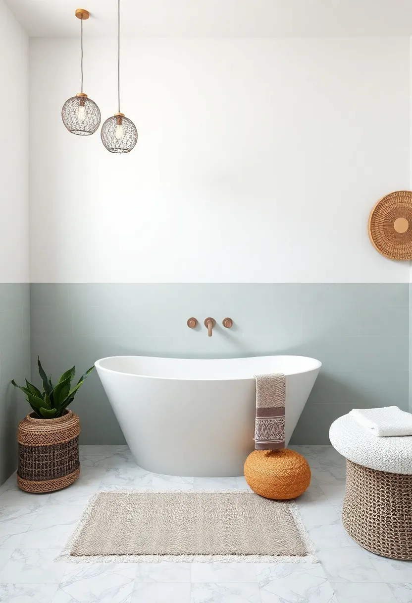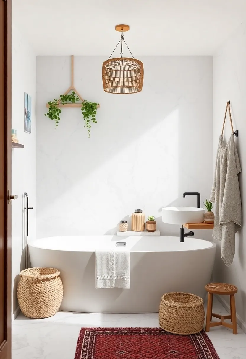 Infuse your bathroom with a sense of whimsical charm by incorporating textured wall hangings and macramé art. These elements not only complement the boho aesthetic but also add depth to the walls. Consider using hanging plants within wall-mounted planters to create a natural vibe while providing the perfect touch of greenery. Layer different woven baskets of varying sizes for a striking visual impact; these can serve both as decor and functional storage solutions.