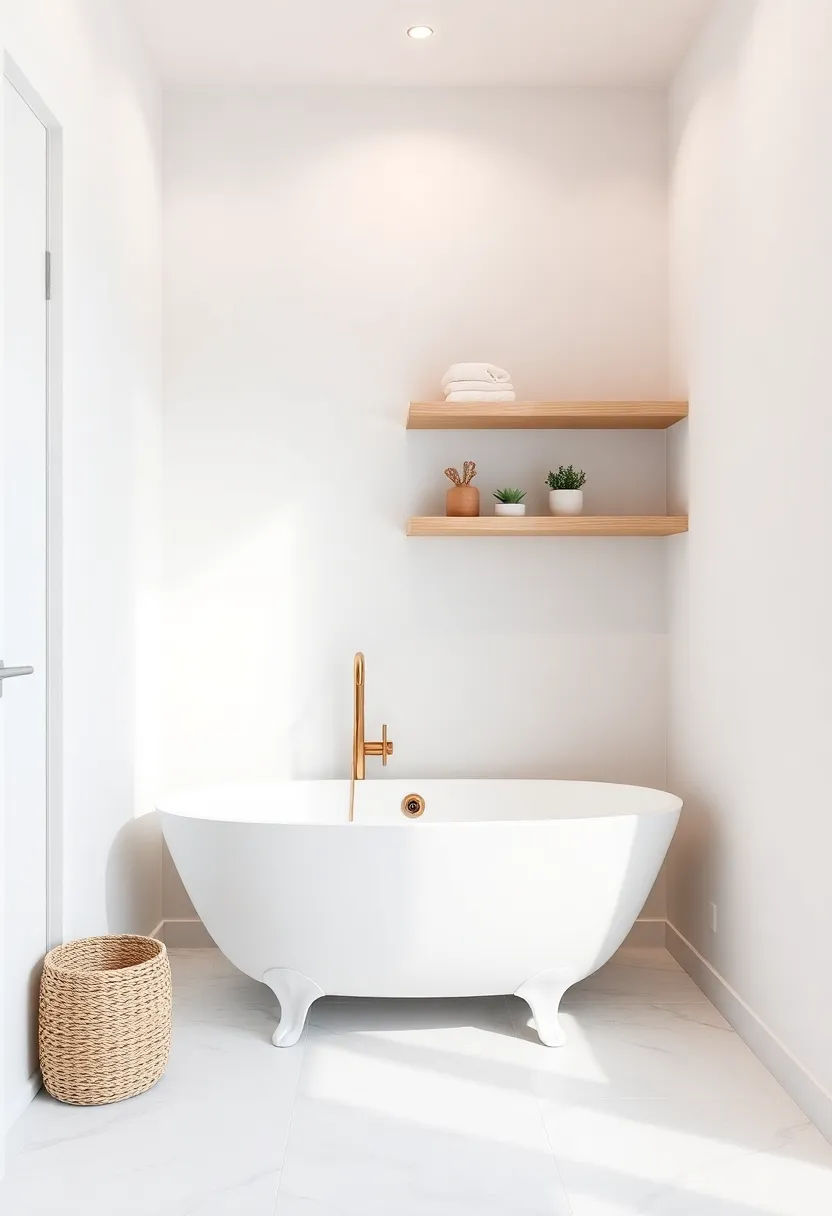 Design a Cozy Nook with a Compact Bathtub and Shelves