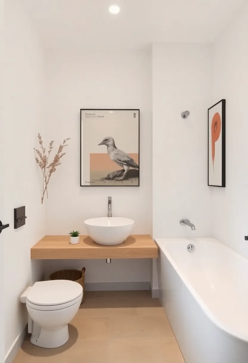 - Functional Art: Look for pieces that serve dual purposes, such as decorative mirrors or artistic hooks for towels, adding both functionality and flair.