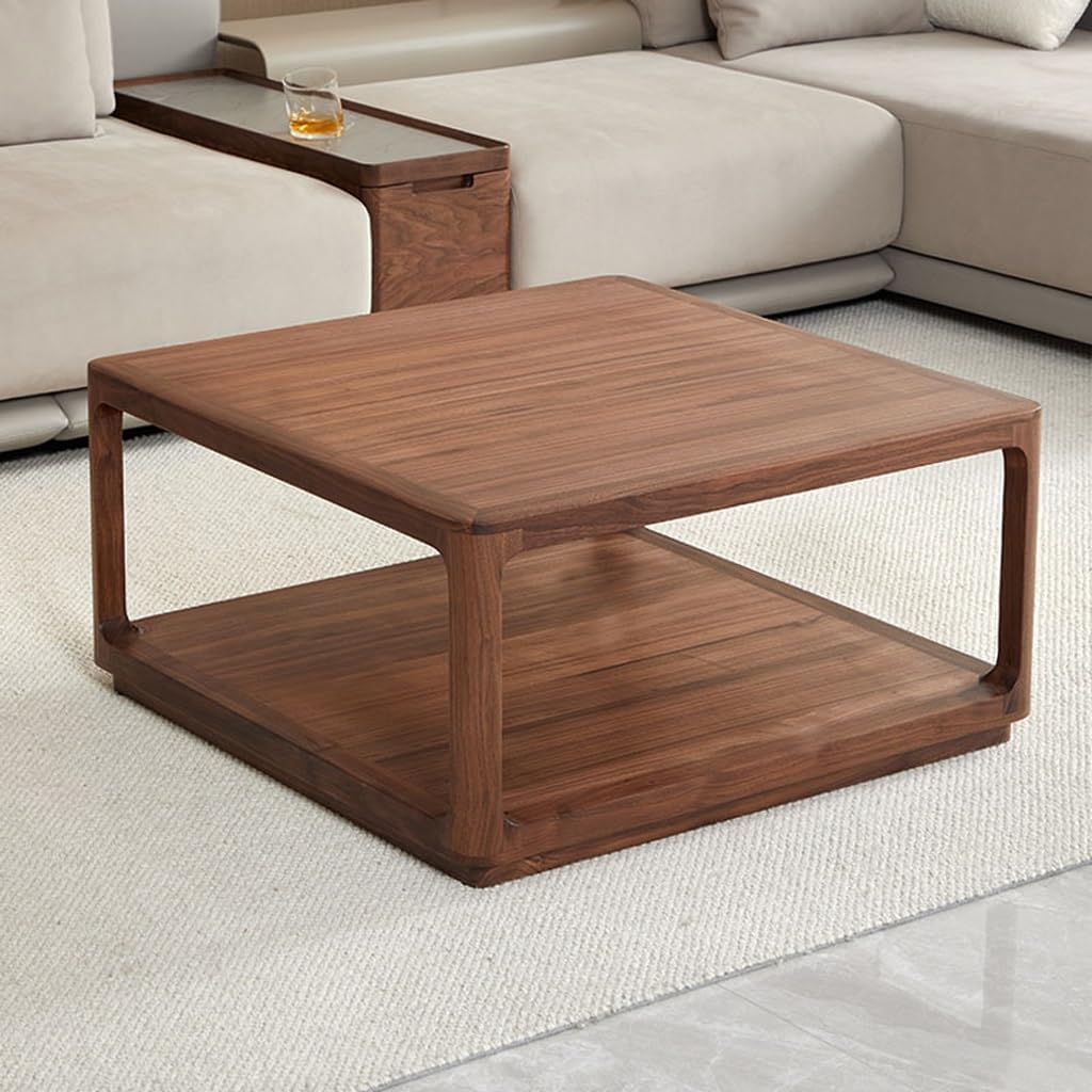 Our living room instantly gained a touch of elegance and modern simplicity when we incorporated this coffee table into the space. Crafted from rich North American black walnut, its natural grain and warm tones bring a cozy yet sophisticated ambiance. The rectangular tempered glass top adds a sleek contrast,balancing solidity with transparency in a way that visually enlarges our area. We especially appreciate the double-layer design: the sturdy open storage layer beneath provides practical room for magazines, remotes, and other items without cluttering the surface. This blend of form and function has helped us maintain a clean, inviting environment.