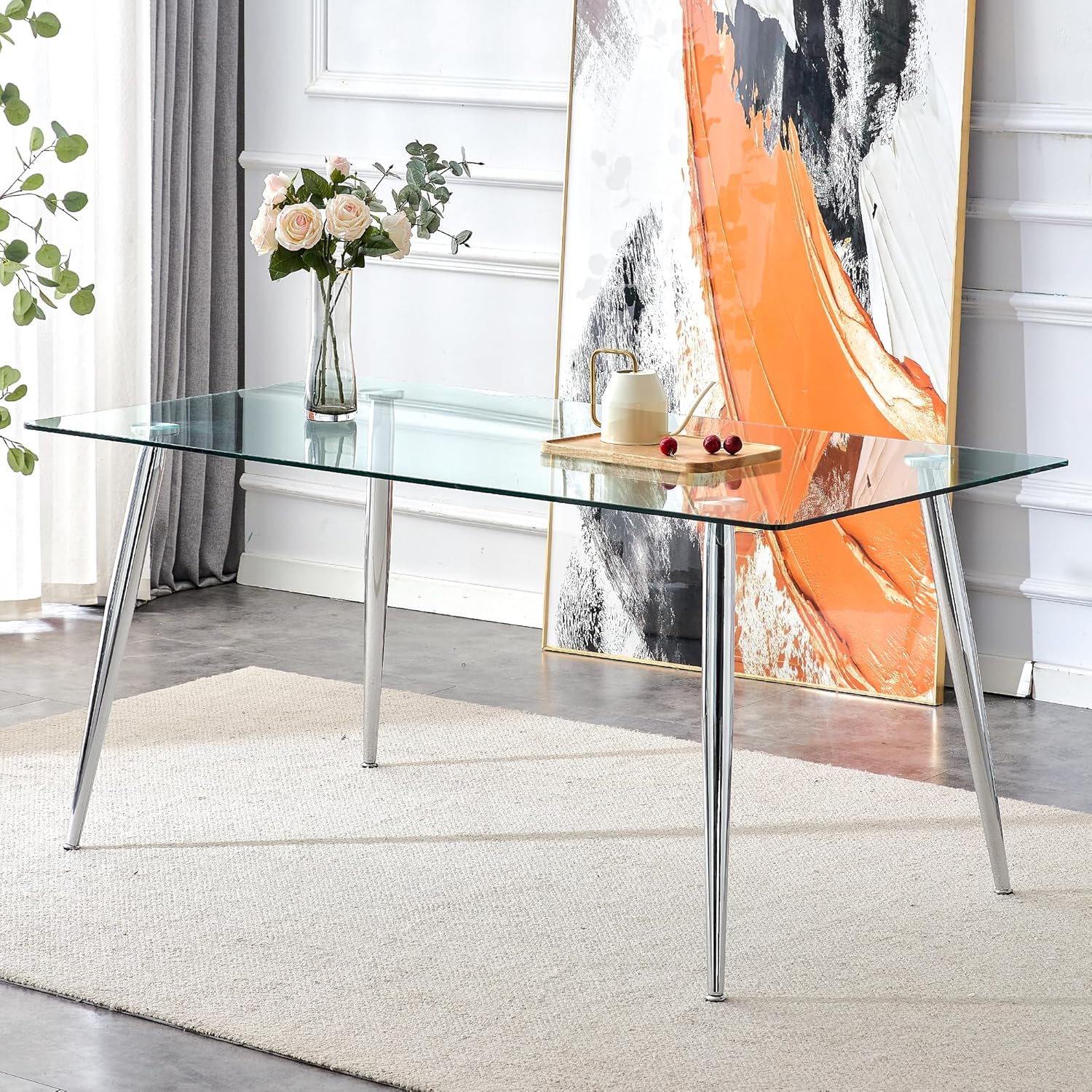 our 63″ Modern Rectangle Glass Dining Table with Silver Legs has truly transformed the way we experience our dining and living spaces.Its blend of sleek design,durable tempered glass,and sturdy silver metal legs offers both style and practicality that fits seamlessly into our daily lives. Whether we’re sharing meals, hosting friends, or simply enjoying a quiet cup of tea, this table stands out as a reliable and elegant centerpiece. If you’re looking to elevate your home with a piece that combines modern aesthetics and functional strength, this table is definitely worth considering.Ready to make this stunning addition to your home?