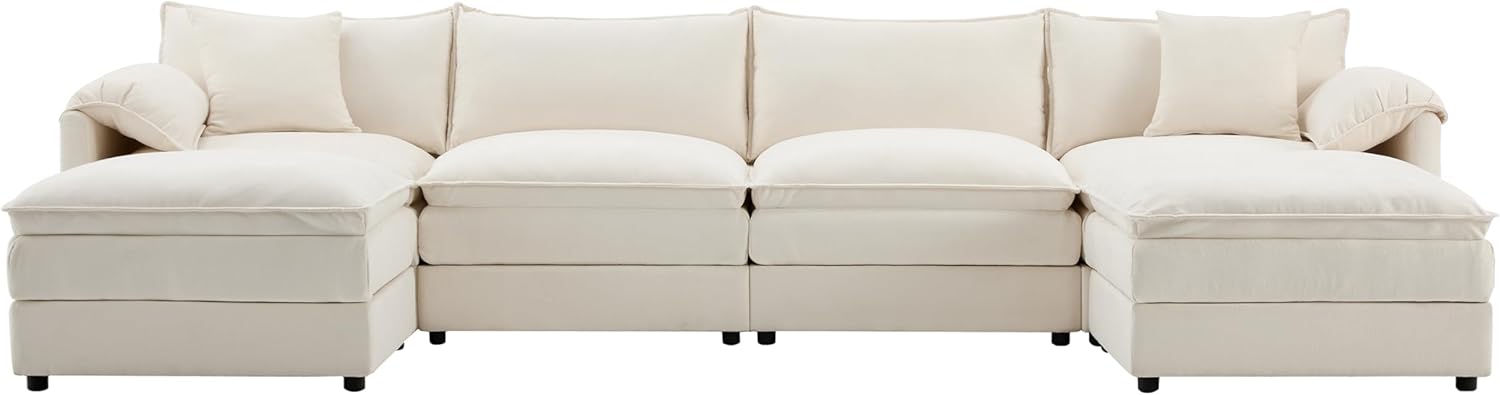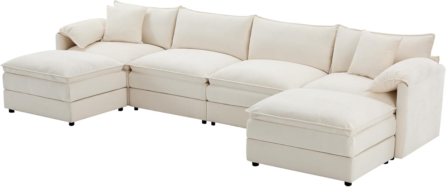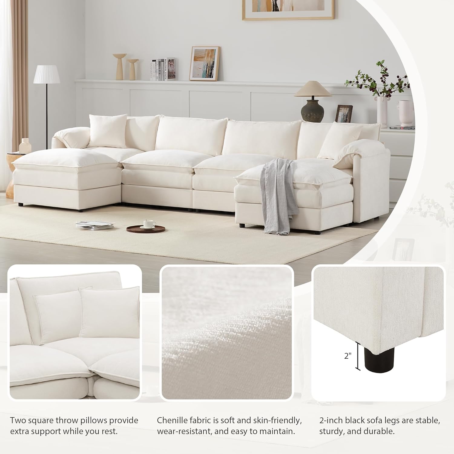 After spending considerable time with this luxurious U-shaped sectional, we appreciate its blend of comfort, style, and adaptability. The plush chenille upholstery paired with double-layered cushions provides a cloud-like seating experience that invites relaxation.Its deep seats and ergonomic armrest pillows ensure support whether you’re lounging solo,working from home,or entertaining guests. The modular ottomans add a layer of versatility, allowing us to customize seating arrangements or use them as footrests, which is ideal for dynamic living spaces.