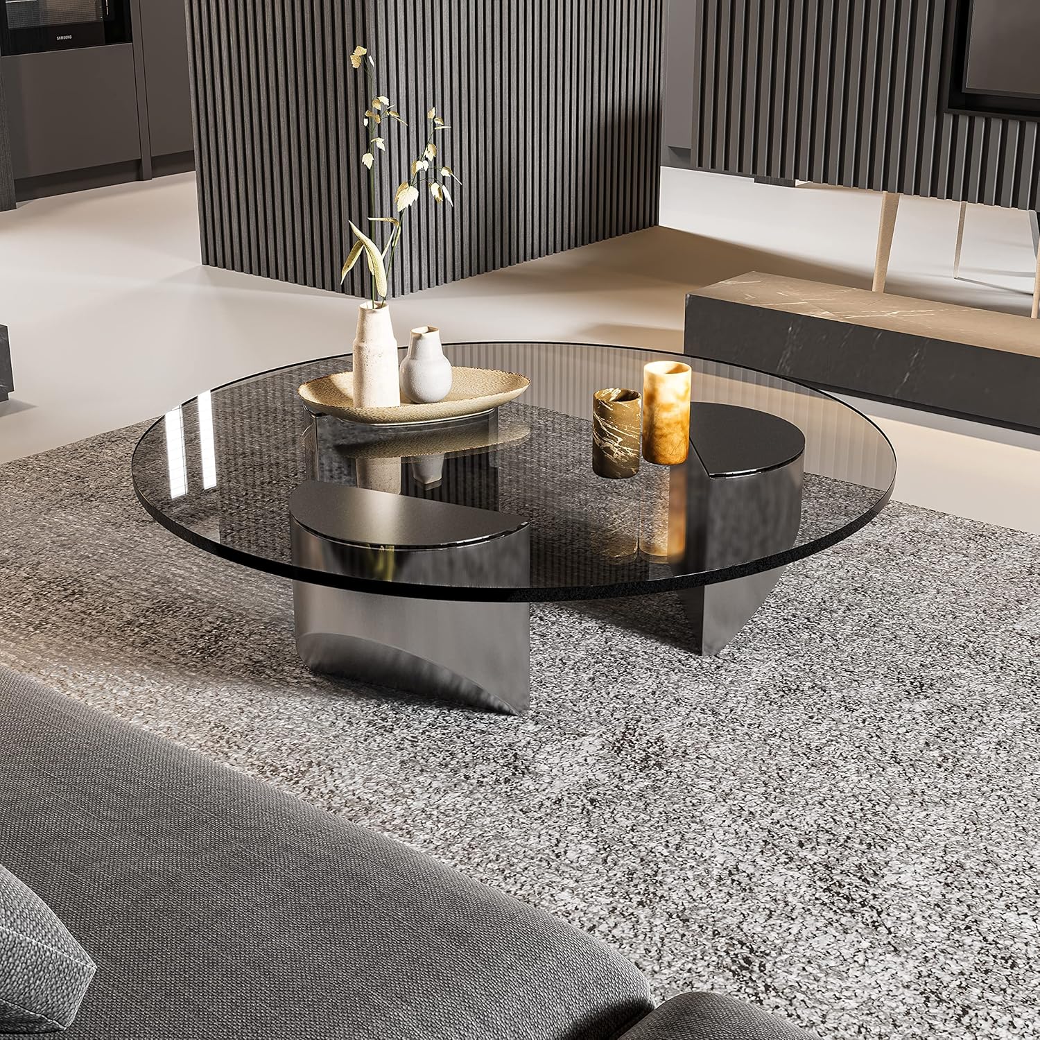 Ready to experience this modern marvel for yourself? Discover more and make it yours today by clicking here: Modern Coffee Table Wedge Round Glass Coffee Table.