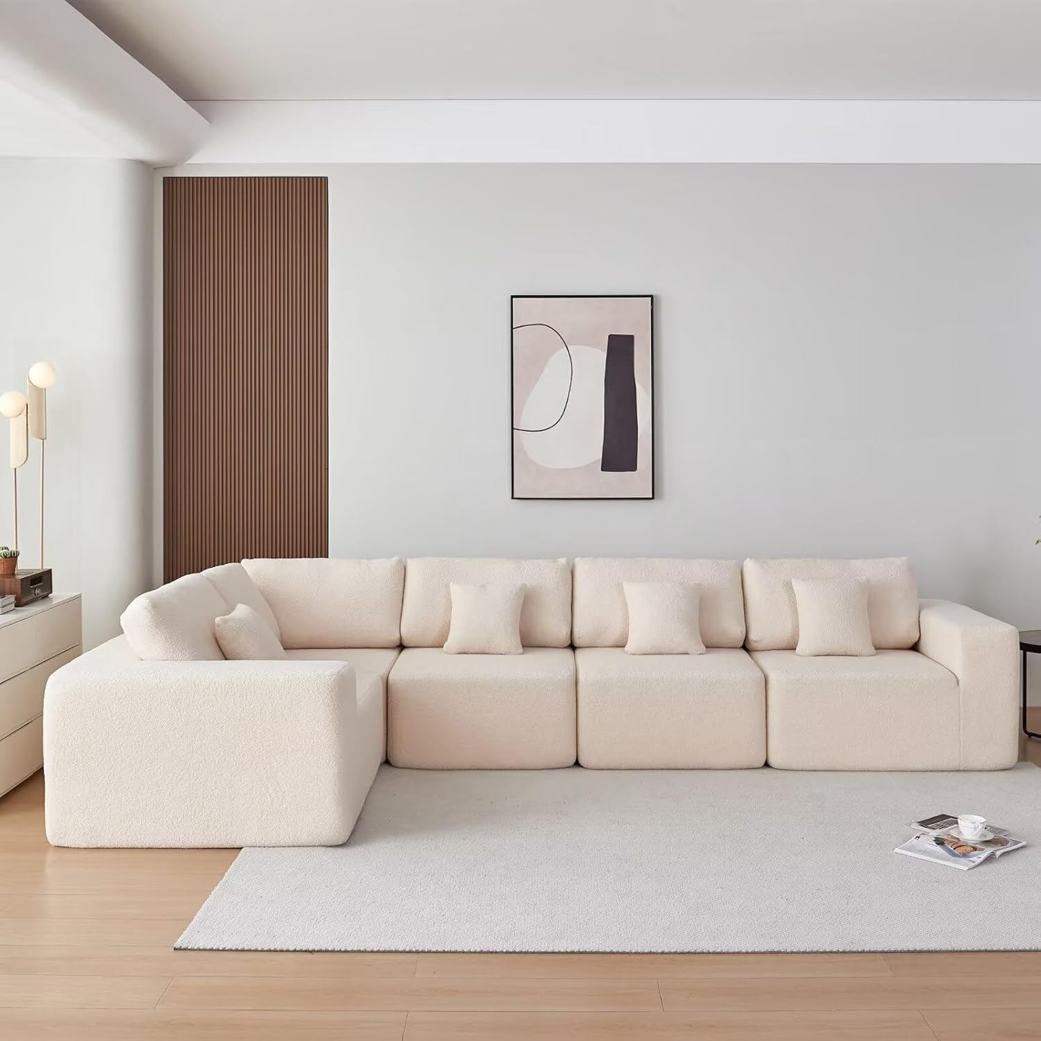 our Oversized Modular Beige Sherpa Sofa Set has truly transformed the way we relax and gather at home. its thoughtfully designed deep seats, plush high-density foam cushions, and versatile U-shaped configuration give us all the comfort and flexibility we need-without the hassle of assembly. While it may not include storage, we firmly believe the superior comfort and roomy design more than make up for it, especially for families who cherish spacious living areas. Whether it’s movie marathons, lively family conversations, or quiet moments with a book, this cozy cloud couch always welcomes us with open arms.