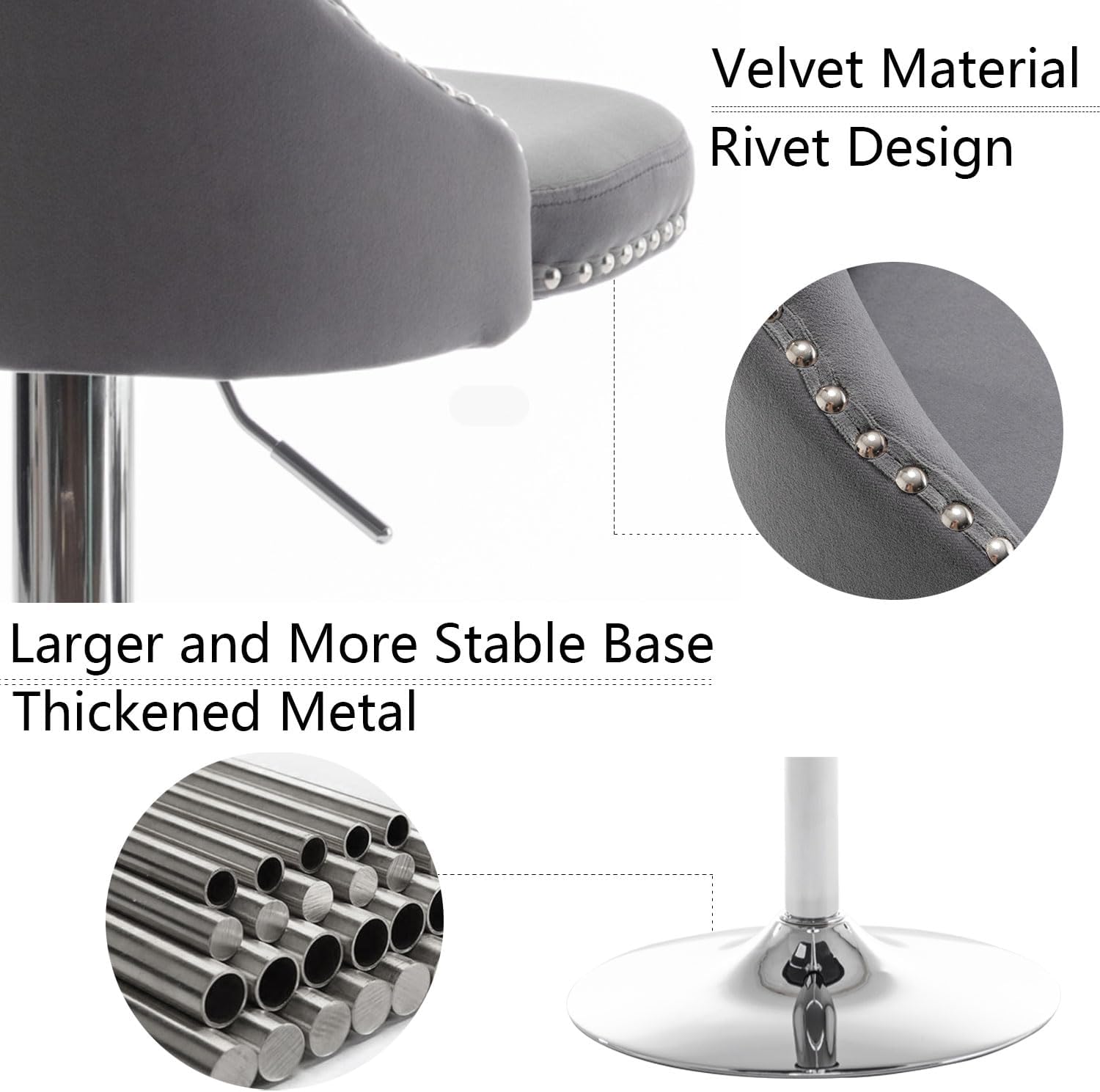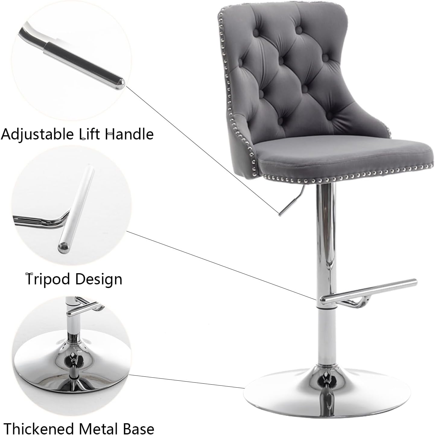 After spending quality time with these stools, we can confidently say they strike a balance between style and functionality. The plush velvet upholstery coupled with the ergonomic curved backrest provides superb comfort for extended seating sessions, while the high-density foam cushion supports without sacrificing softness. The 360° swivel mechanism and adjustable height feature make it easy for users of varying preferences to customize their experience, whether at a kitchen island or a home pub. The sturdy metal frame supports up to 300 lbs, ensuring we felt secure and stable every time we sat down.Plus, the vintage-inspired nailhead trim and button embellishments add a touch of sophistication that blends seamlessly in both modern and classic decor setups.