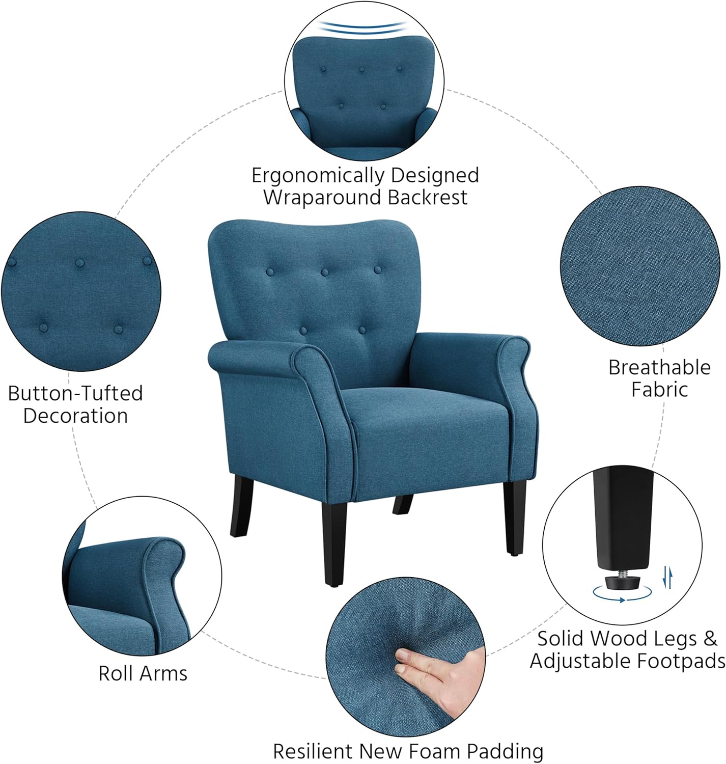 When we look at other accent chairs on the market, this set stands out for its blend of classic mid-century charm with practical durability. The tufted back buttons and rolled arms add a refined touch that many competing designs lack, offering a perfect balance between style and comfort.Unlike bulkier accent chairs, these maintain a compact footprint without sacrificing support-such as the 21.7″ high wingback, which cradles the back while keeping us comfortably upright. The use of linen-like fabric is both appealing and functional; it resists wrinkles and wear far better than synthetic alternatives we’ve encountered, making these chairs a smart choice for everyday use in busy spaces.