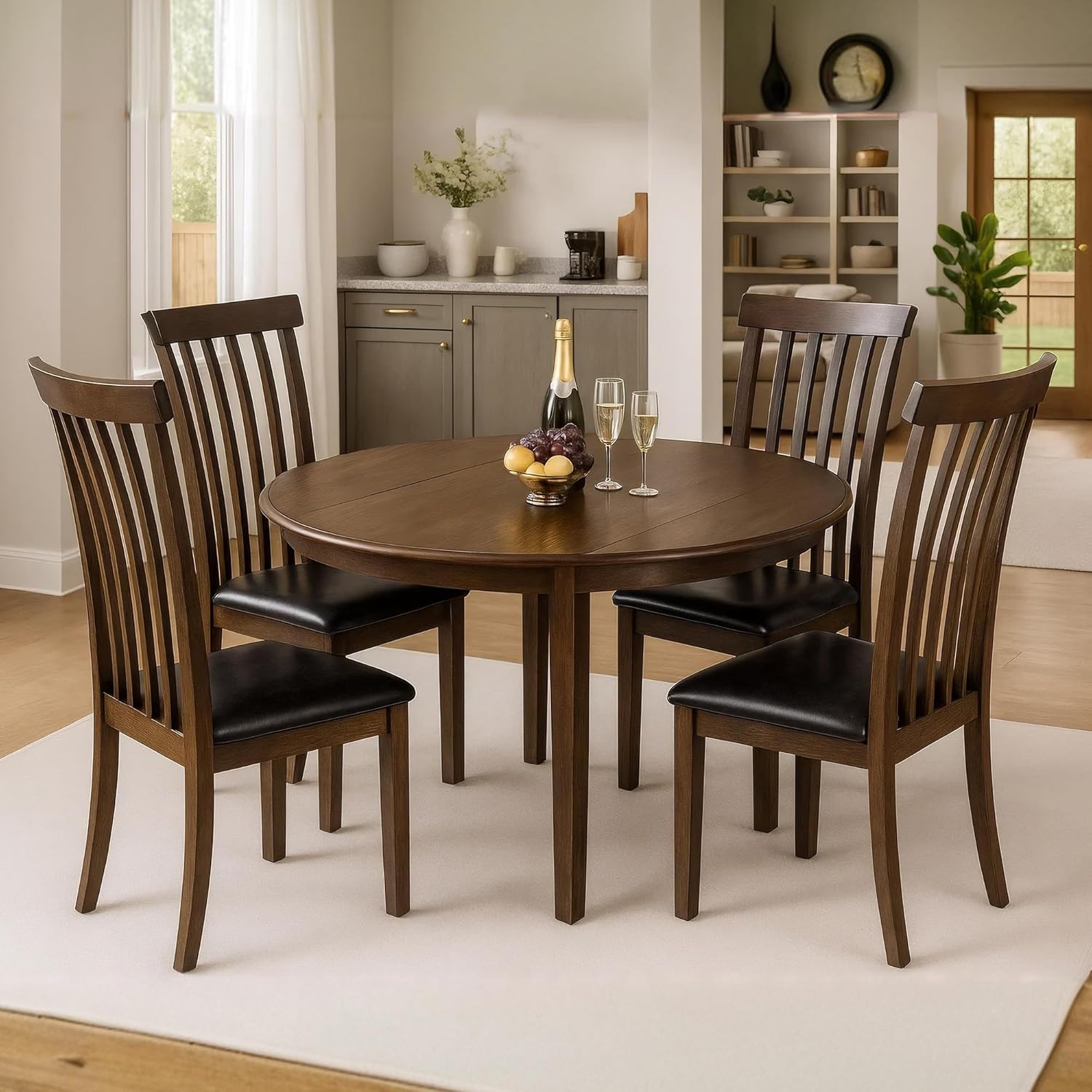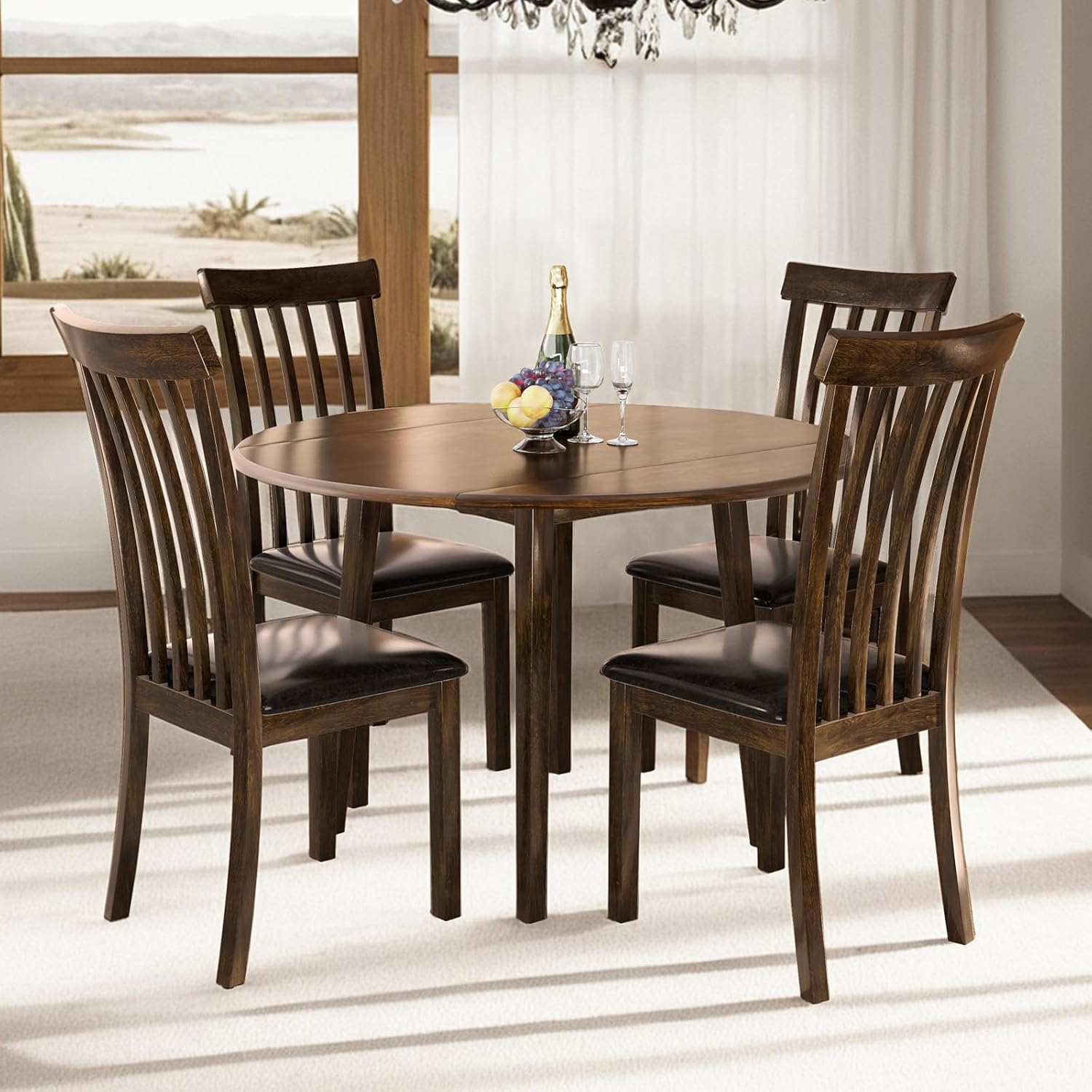 this dining set strikes an impressive balance between style, functionality, and durability. The foldable round table design is a game-changer for anyone dealing with limited space, allowing for easy expansion or compact storage without sacrificing comfort or aesthetics. The use of solid wood combined with PU leather cushioned chairs creates an inviting environment that complements various interior styles-from mid-century modern to contemporary minimalism.We also appreciate the attention to detail in ergonomics, making long meals or casual gatherings comfortably enjoyable. Assembly is straightforward and quick, meaning you can start using it almost immediately without hassle.