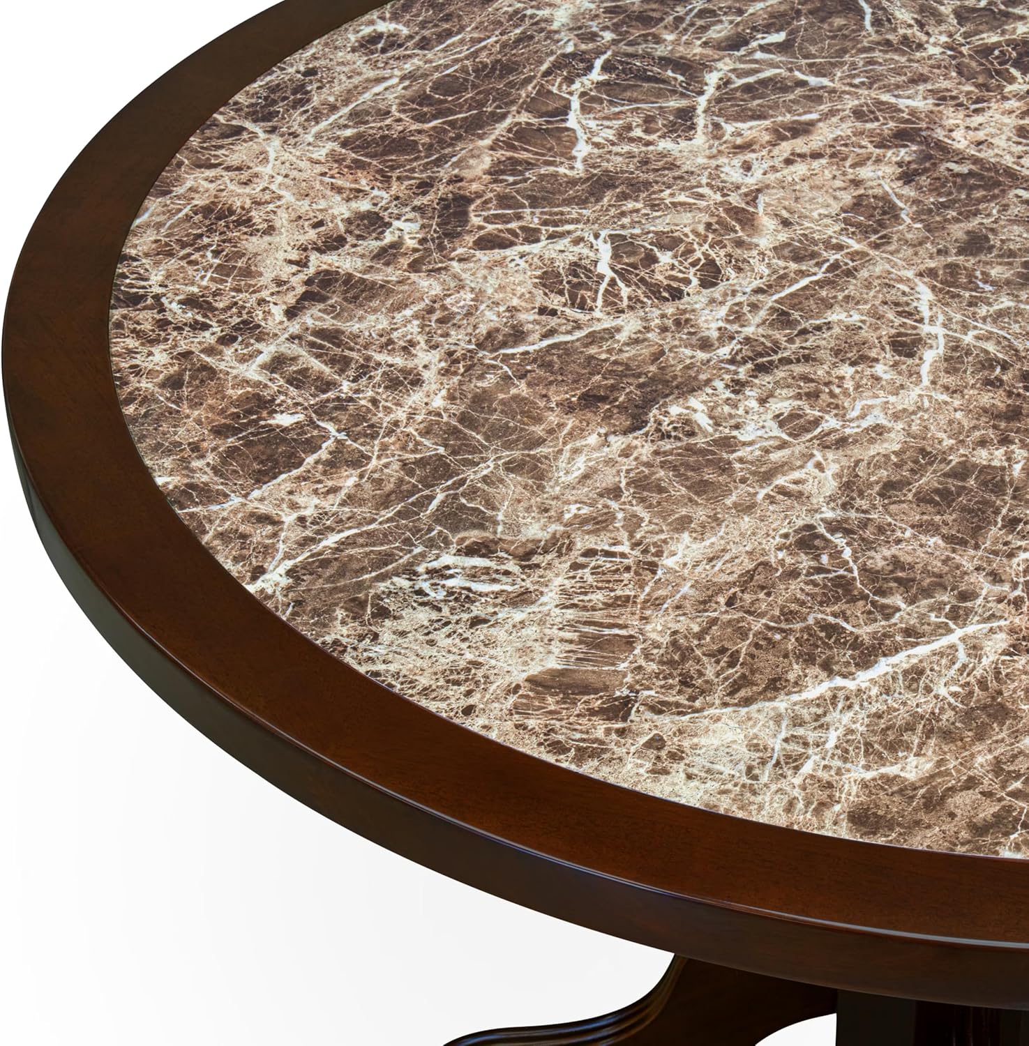 | Compact, round shape is perfect for apartments, breakfast nooks, and smaller dining areas. | Limited color options-only the rippled sand marble and mahogany finish combination available. |