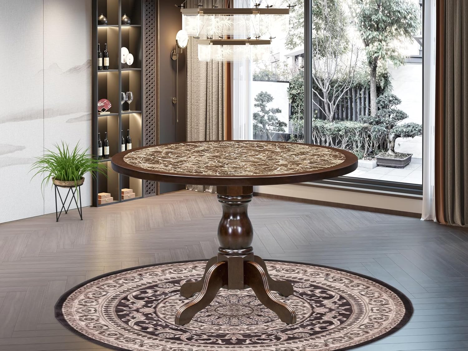 The round design with a 42-inch diameter creates a perfect balance between intimacy and spaciousness, making it ideal for apartments, breakfast nooks, or any smaller dining area where space is at a premium. This size comfortably accommodates up to four people without the feeling of overcrowding, encouraging warm, face-to-face conversations during meals. The circular shape also eliminates sharp corners, improving flow and safety, especially in high-traffic or compact spaces. Paired with the table’s solid Mahogany base, it guarantees a stable and sturdy dining experience even during lively gatherings.