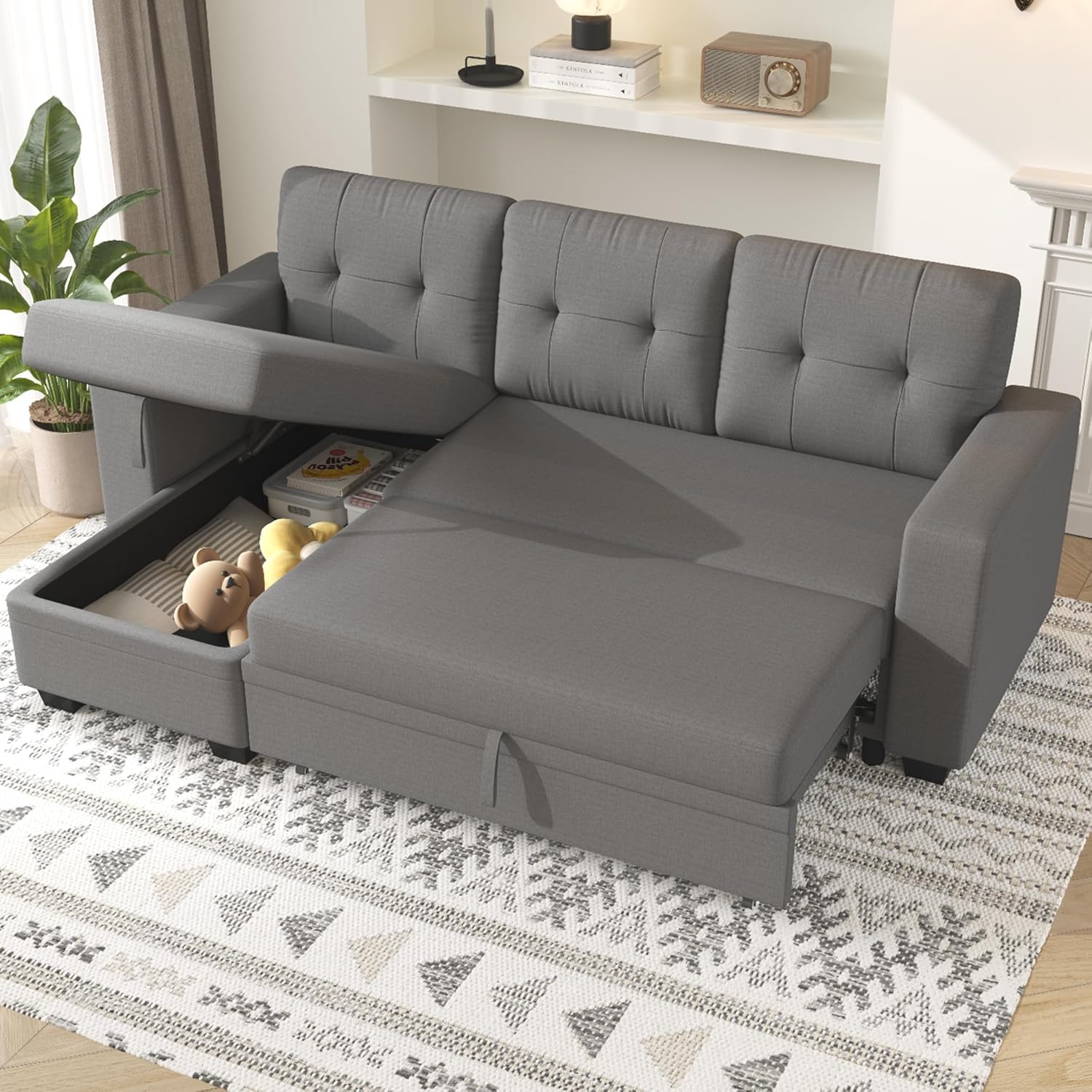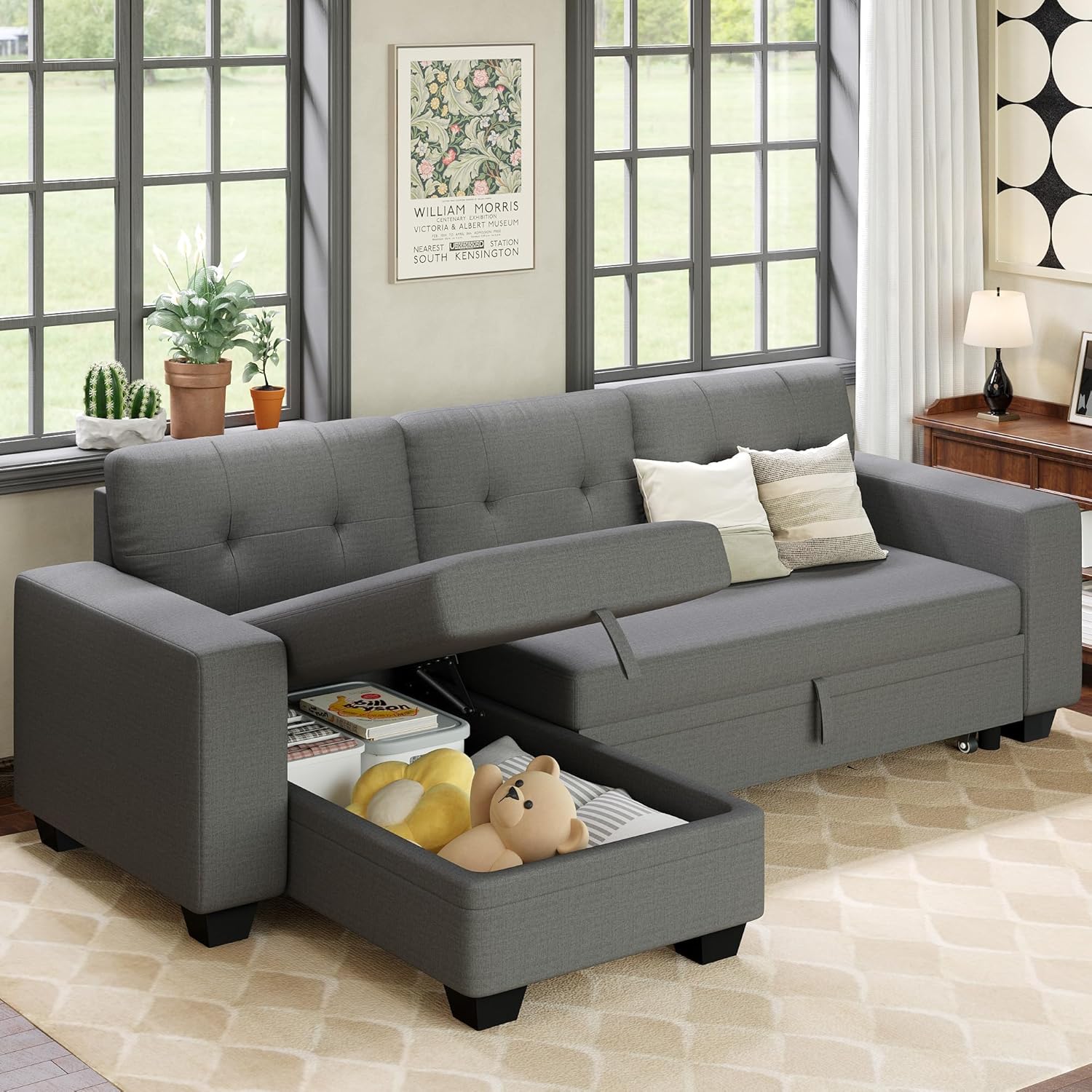 This versatile sectional truly shines when it comes to maximizing space without sacrificing comfort or style. Its ability to transform easily into a sleeper bed makes it an excellent choice for those who frequently host overnight guests but have limited room. The clever hidden storage under the chaise is perfect for stashing extra bedding or everyday essentials, keeping living areas neat and clutter-free. We appreciate the durable linen upholstery combined with a sturdy wooden frame, which promises long-lasting use while maintaining a modern aesthetic. The reversible L-shape design offers flexibility that fits well in various room layouts, making it an adaptable centerpiece for small apartments, dorms, or cozy living rooms.