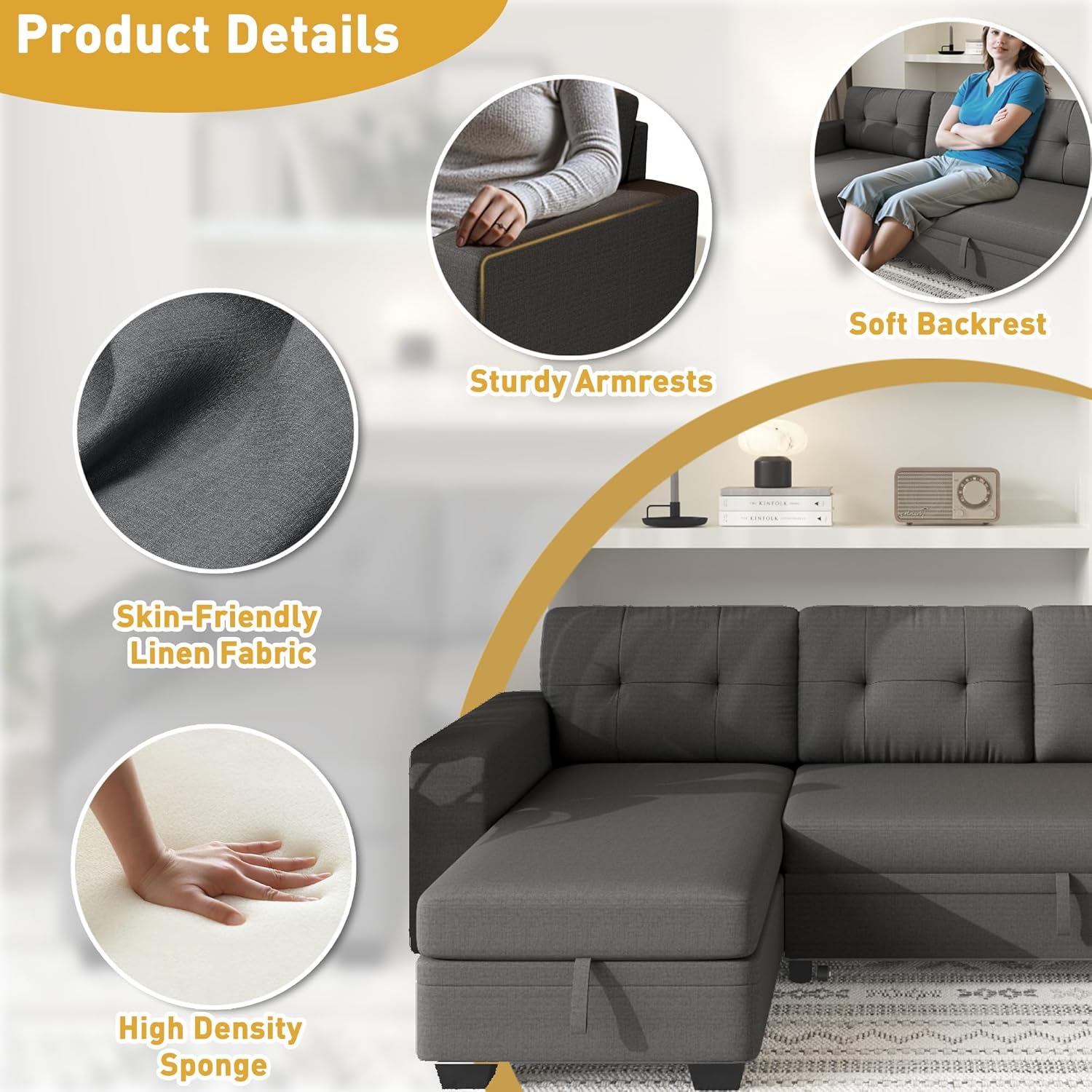 Beyond its sectional versatility, the pull-out sleeper feature adds yet another layer of functionality. The transformation from sofa to bed is smooth and requires minimal effort, providing a cozy and inviting sleep option for guests or spontaneous naps.built with sturdy plywood and hardwood framing, combined with breathable linen fabric and high-density sponge cushions, the structure offers both durability and comfort. This balance makes it a smart investment for anyone seeking adaptable furniture that meets everyday seating and sleeping needs.