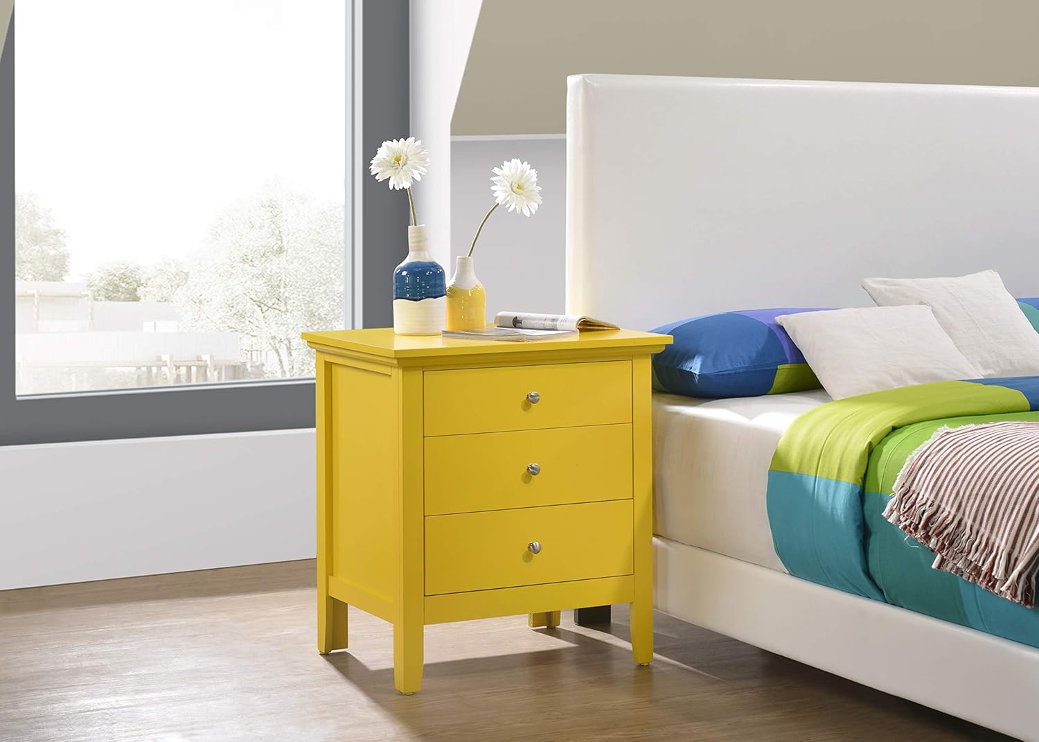 We recently had the chance to put the Glory Furniture Hammond 3 drawer Nightstand to the test in our own bedrooms, and we’re excited to share our experience with this charming piece. Featuring real wood veneers that lend a warm, authentic texture, along with sturdy dove-tailed drawers, this nightstand promises both style and lasting durability. The yellow finish brings a subtle pop of color that is both cheerful and inviting, while the nickel hardware adds a sleek touch without worrying about tarnish over time. Delivered fully assembled, it was ready to enhance our space right out of the box.Join us as we explore how this nightstand holds up in daily use, and whether it truly lives up to the quality it presents.