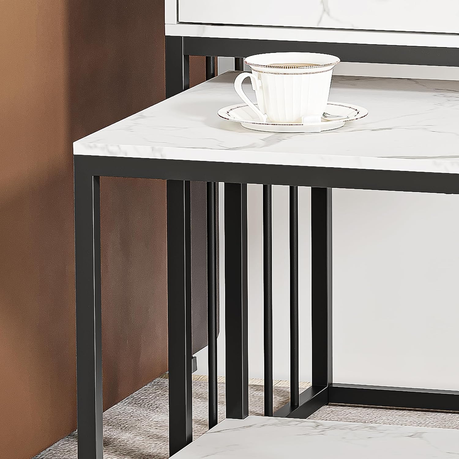 From the moment we first examined the marble grain finish, its luxurious appearance immediately stood out, adding a refined elegance to any setting. The smooth surface mimics authentic marble texture while being remarkably low-maintenance, making it ideal for everyday use. This finish not only enhances the table’s visual appeal but also provides a durable and scratch-resistant layer that keeps the coffee table looking pristine over time. the crisp white tone complements a variety of interior styles, effortlessly blending with both minimalist and contemporary décors.