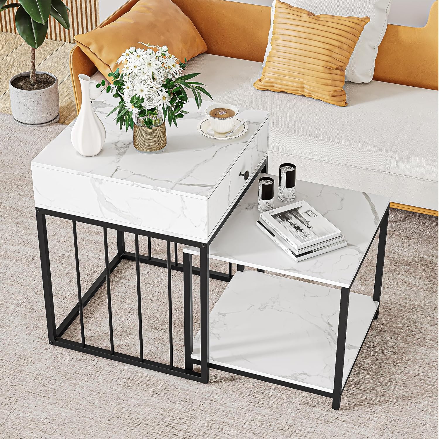 Our time with this modern coffee table has been truly satisfying. The compact size fits perfectly into various corners of our home, from the living room to the bedroom, maximizing space without compromising style. Its smooth-gliding drawer and two-tier shelf provide ample storage, helping us keep everyday essentials like remote controls, magazines, and coasters neatly organized and within reach. The marble grain finish instantly elevates the aesthetic of any room, lending a subtle yet elegant charm that blends effortlessly with different interior styles.