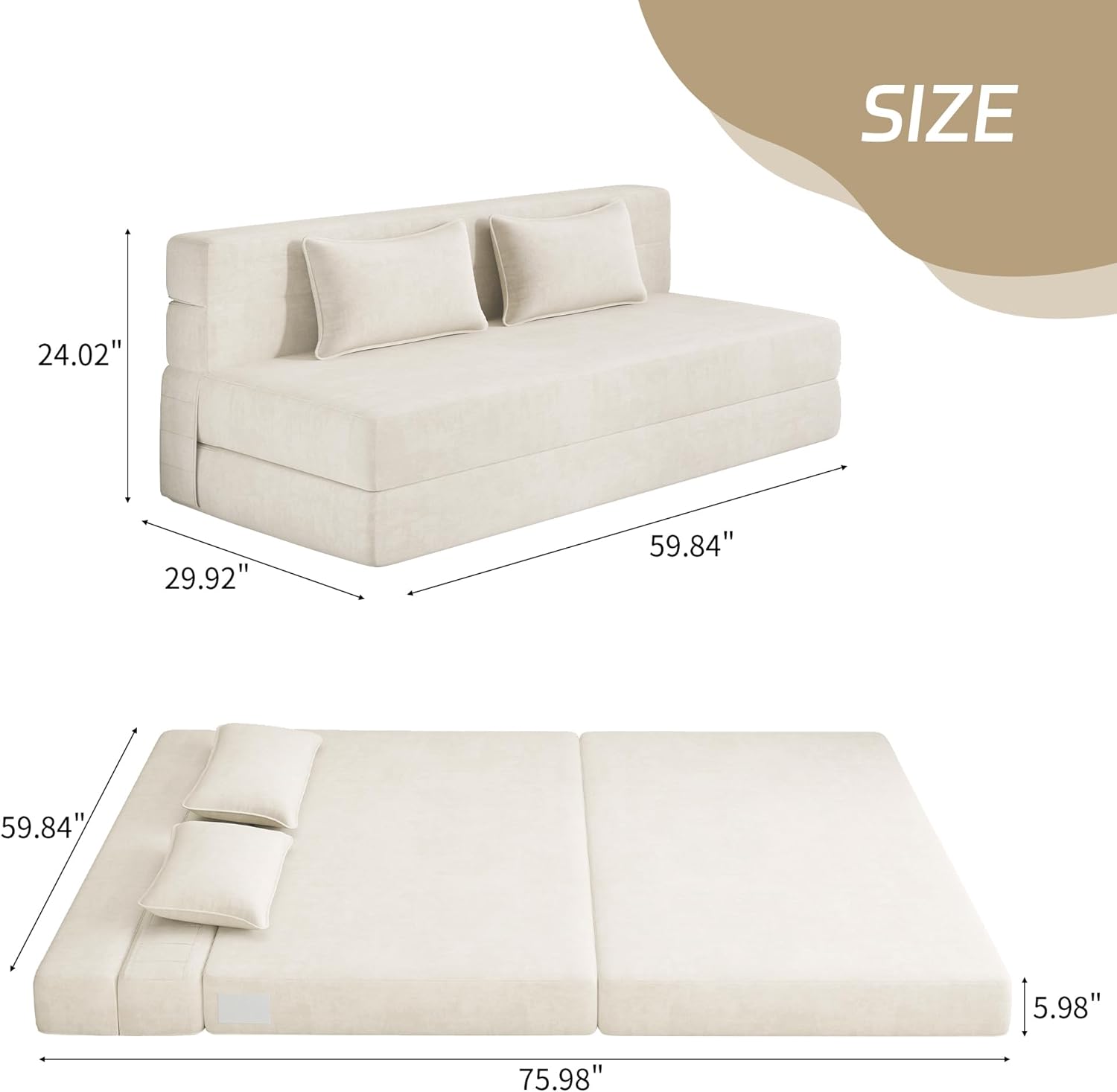 The tri-fold design of this futon sofa bed is a game-changer for maximizing comfort without sacrificing valuable floor area. Its lightweight,compact construction allows it to effortlessly convert from a cozy sleeper chair into a flat futon bed in just a few simple motions. Because it folds out smoothly, it fits perfectly in tight spaces like small apartments, guest rooms, or even office nooks. The high-density memory foam inside provides ergonomic support in both layouts, ensuring you never have to compromise on comfort, whether sitting or sleeping.