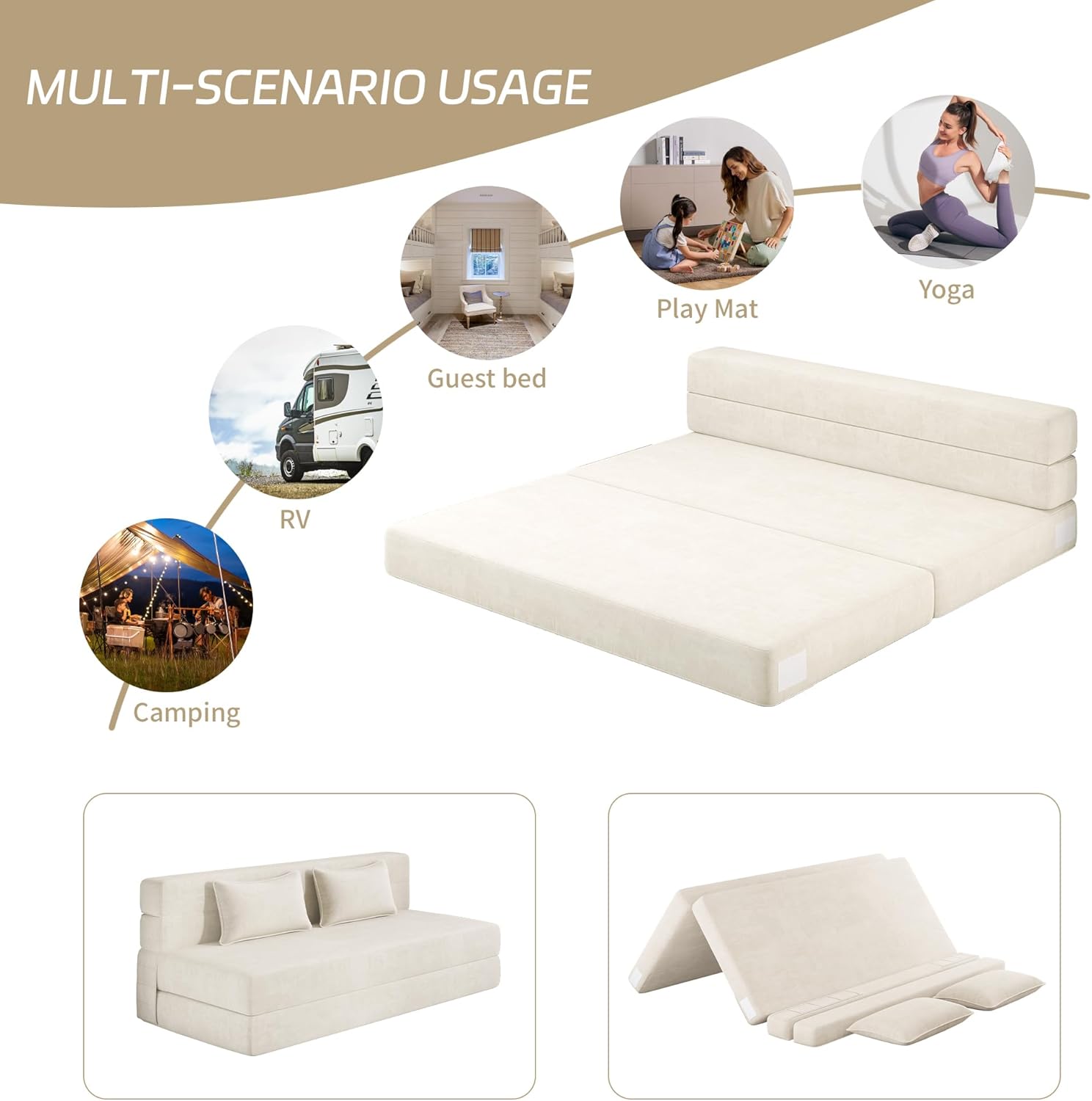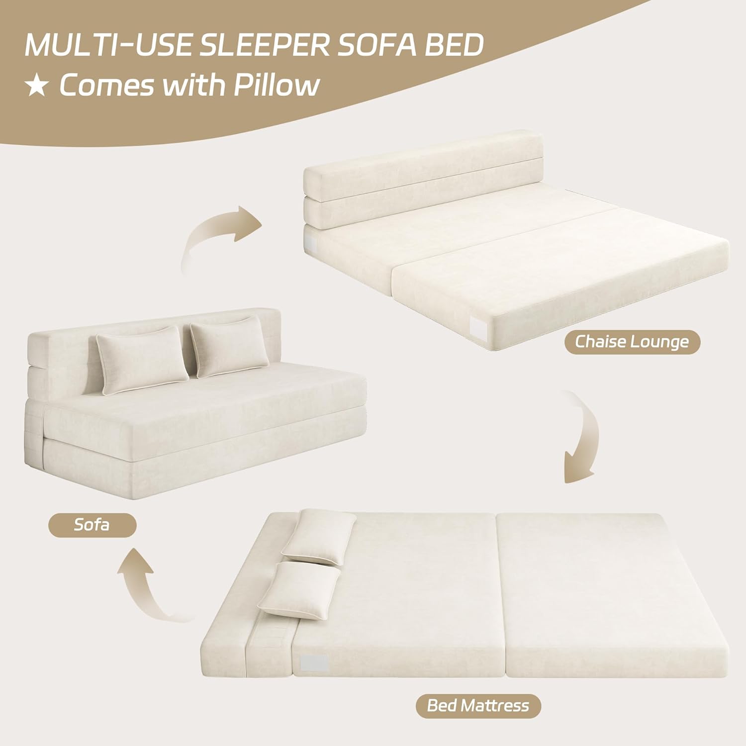 After spending time with this versatile folding sofa bed,we appreciate how it blends comfort,convenience,and style in a compact package. The high-density memory foam delivers solid support while remaining soft enough for relaxing or sleeping. Its breathable cotton-linen cover ensures a fresh feel throughout extended use, and the detachable fabric makes cleaning a breeze-an critically important feature for busy households. The tri-fold design is lightweight and portable, letting you effortlessly move it between rooms, or even take it outdoors for a quick rest.While the initial unpacking requires some patience to let it regain its full shape, the overall setup is hassle-free and requires no additional assembly.