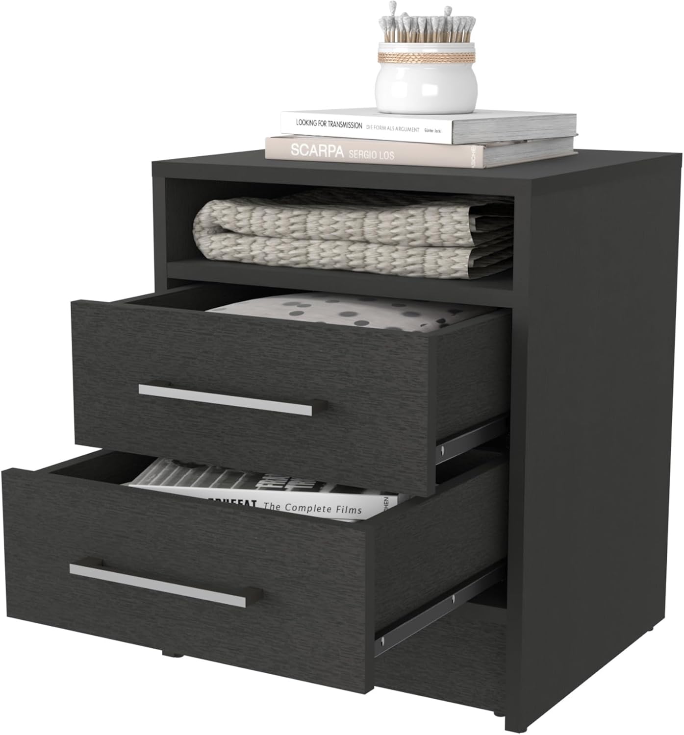 the Modern Philadelphia Nightstand perfectly balances style and function, bringing a fresh, contemporary vibe to any space. Its thoughtful design-the mix of textures, sleek handles, and elevated legs-not only enhances your room’s aesthetic but also offers practical storage solutions with two smooth-gliding drawers and a convenient open shelf.We appreciated how easy it was to assemble and how versatile it proves, whether by your bedside, next to the sofa, or even in an entryway. If you’re looking to elevate your space with a piece that’s as stylish as it is indeed useful, this nightstand definitely deserves a spot in your home.