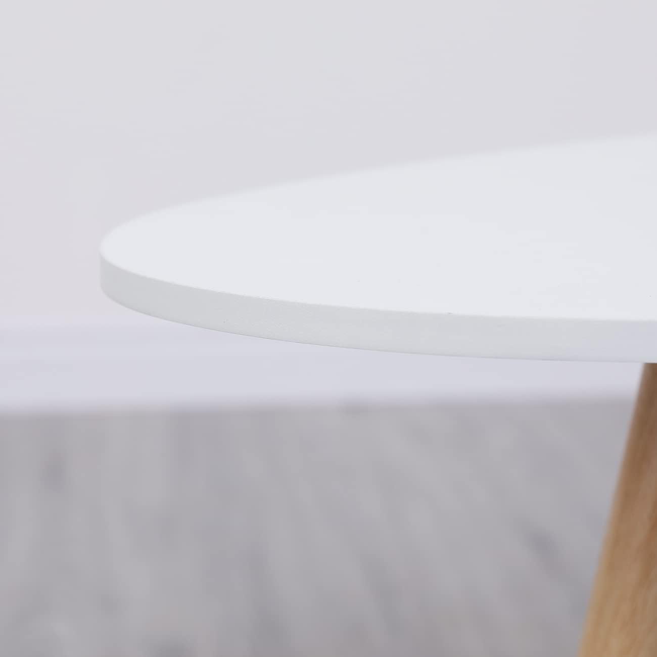 We appreciate the thoughtful design that perfectly balances form and function.Featuring a sleek oval shape with smooth, arc-shaped corners, this table adds a touch of modern mid-century charm to any living space while prioritizing safety and comfort.The classic white finish enhances its minimalist aesthetic, making it a versatile piece compatible with a variety of decors. Crafted with a durable 0.47-inch thick tabletop and sturdy tube legs, it delivers both stability and longevity without sacrificing style. With a lightweight frame of just under 12 pounds, it’s easy to move, yet robust enough to support up to 55 pounds-safe enough even if kids use it as a play surface.