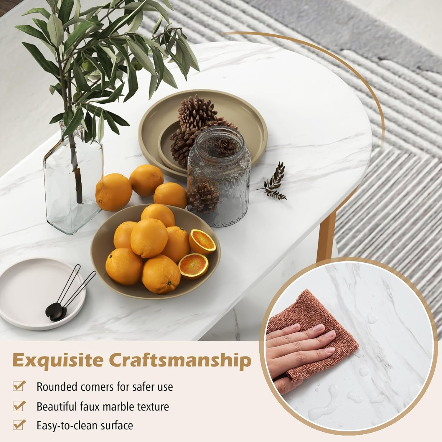 | Faux Marble Top | Elegant, lightweight, easy to clean |