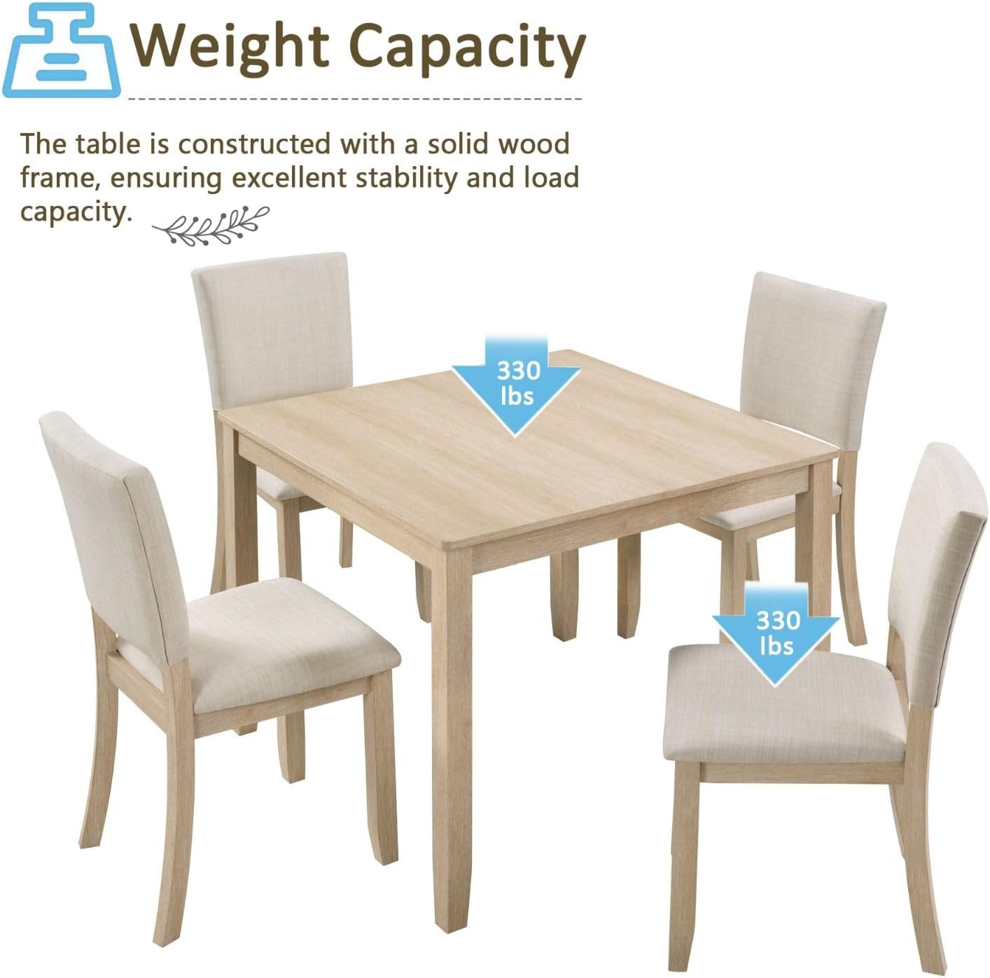 Sturdy rubberwood frame⁢ supports up to 330 lbs per ​table and chair Color may slightly differ from online‌ images due to lighting or screen settings
