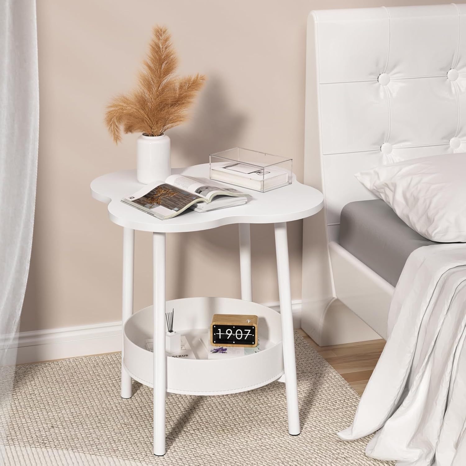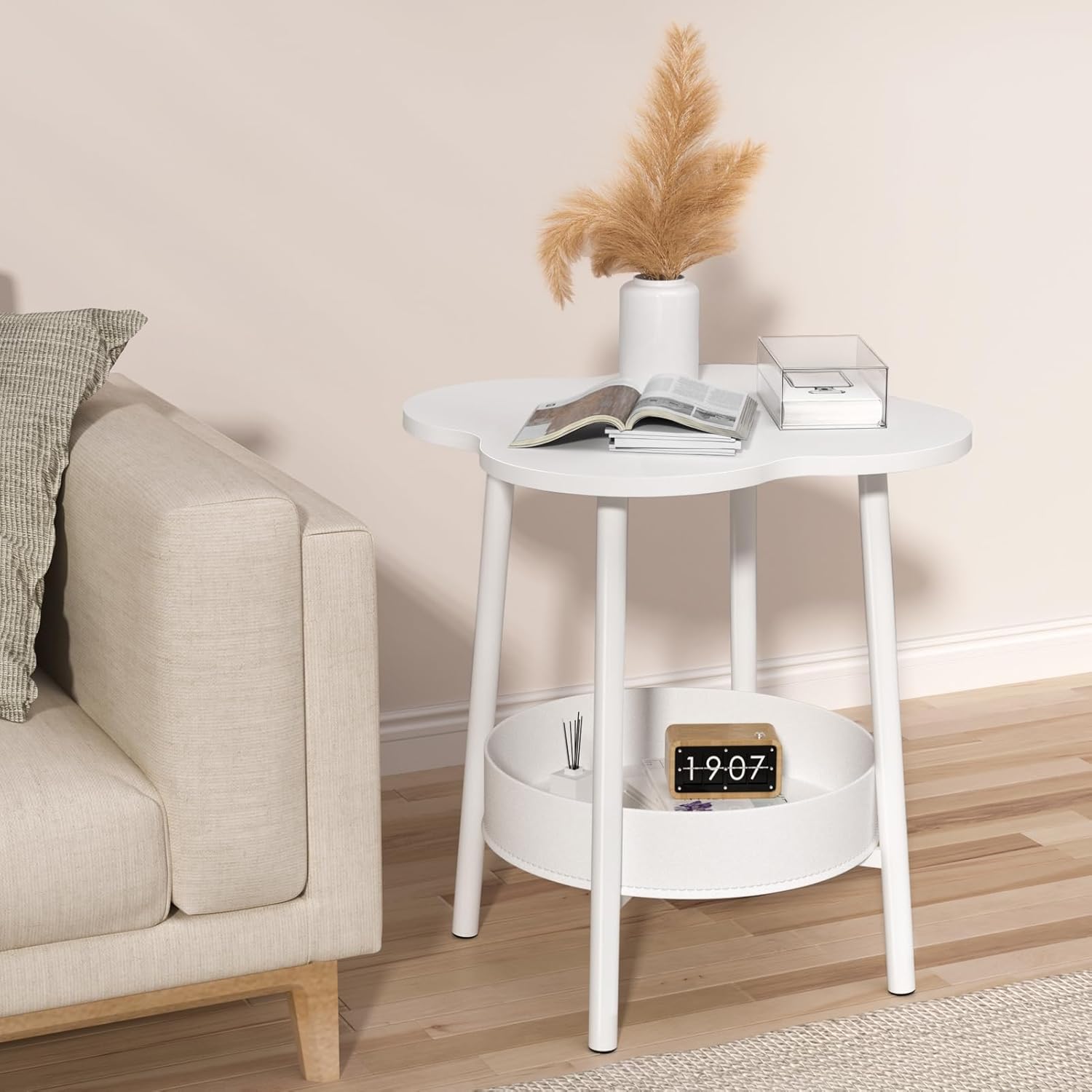 In day-to-day use, the two-tier layout has been a game-changer for organizing essentials without cluttering the surface.We love storing books, tea sets, and even small decorative pots on the bottom level, while the flower-shaped top adds a playful yet modern aesthetic that complements our minimalist décor. The sturdy build supports everything from laptops to snacks reliably, making it a versatile companion for both work and relaxation zones. Its compact size fits snugly next to our sofa yet provides plenty of functionality, particularly in our smaller living space.