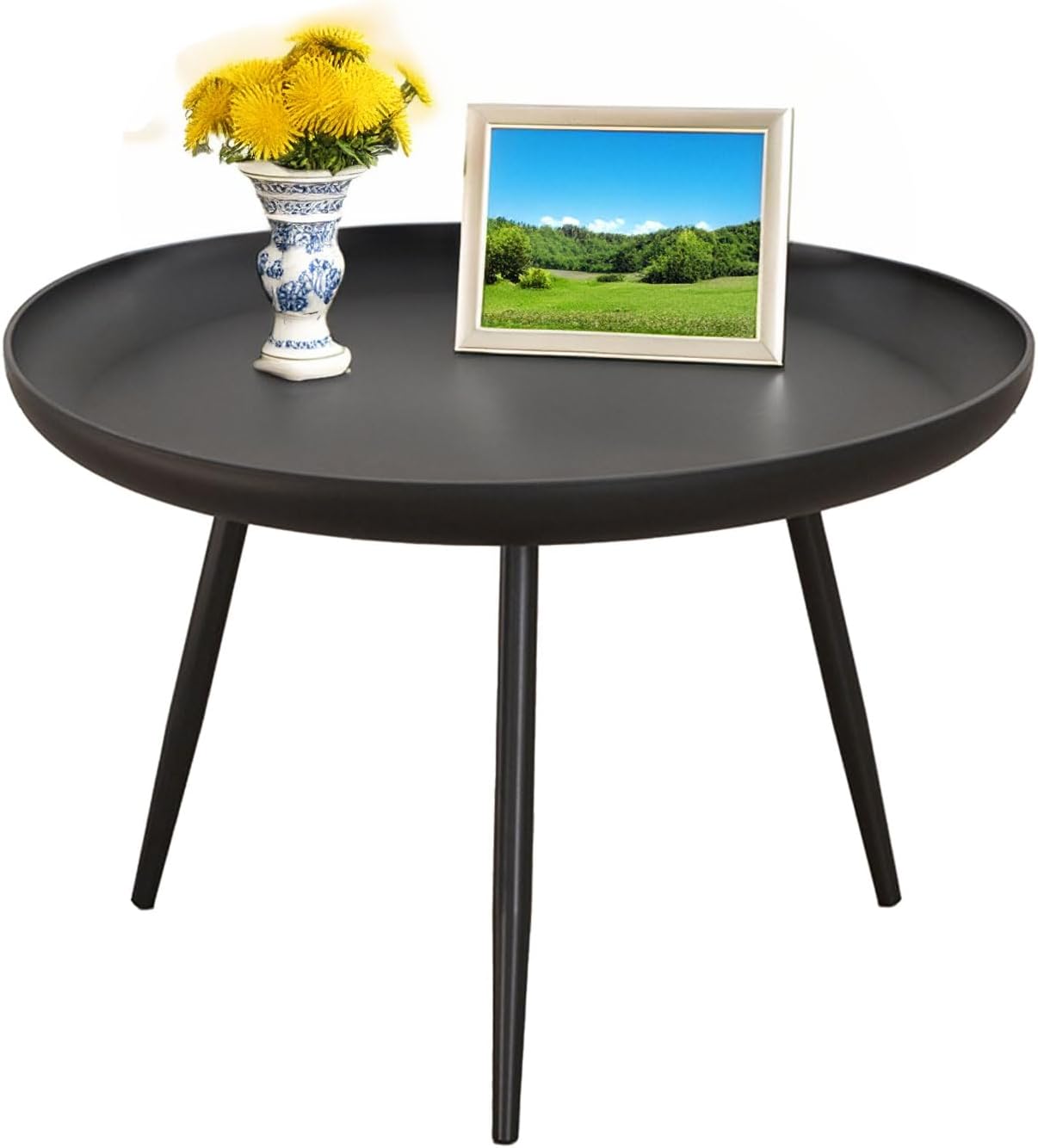 Our first impression of this sleek round table is its impeccable blend of modern aesthetics and sturdy craftsmanship. the matte black powder-coated metal finish not only provides a refined look but also ensures durability in everyday use. The minimalist design, featuring a round top and tripod legs, creates a visually light piece that fits effortlessly into various room styles-from contemporary bedrooms and eclectic kids’ rooms to minimalist living spaces. Its compact size with a 23.62-inch diameter and a height of 15.75 inches strikes a perfect balance between functionality and space efficiency, making it ideal for snug corners or alongside sofas and beds where every inch matters.